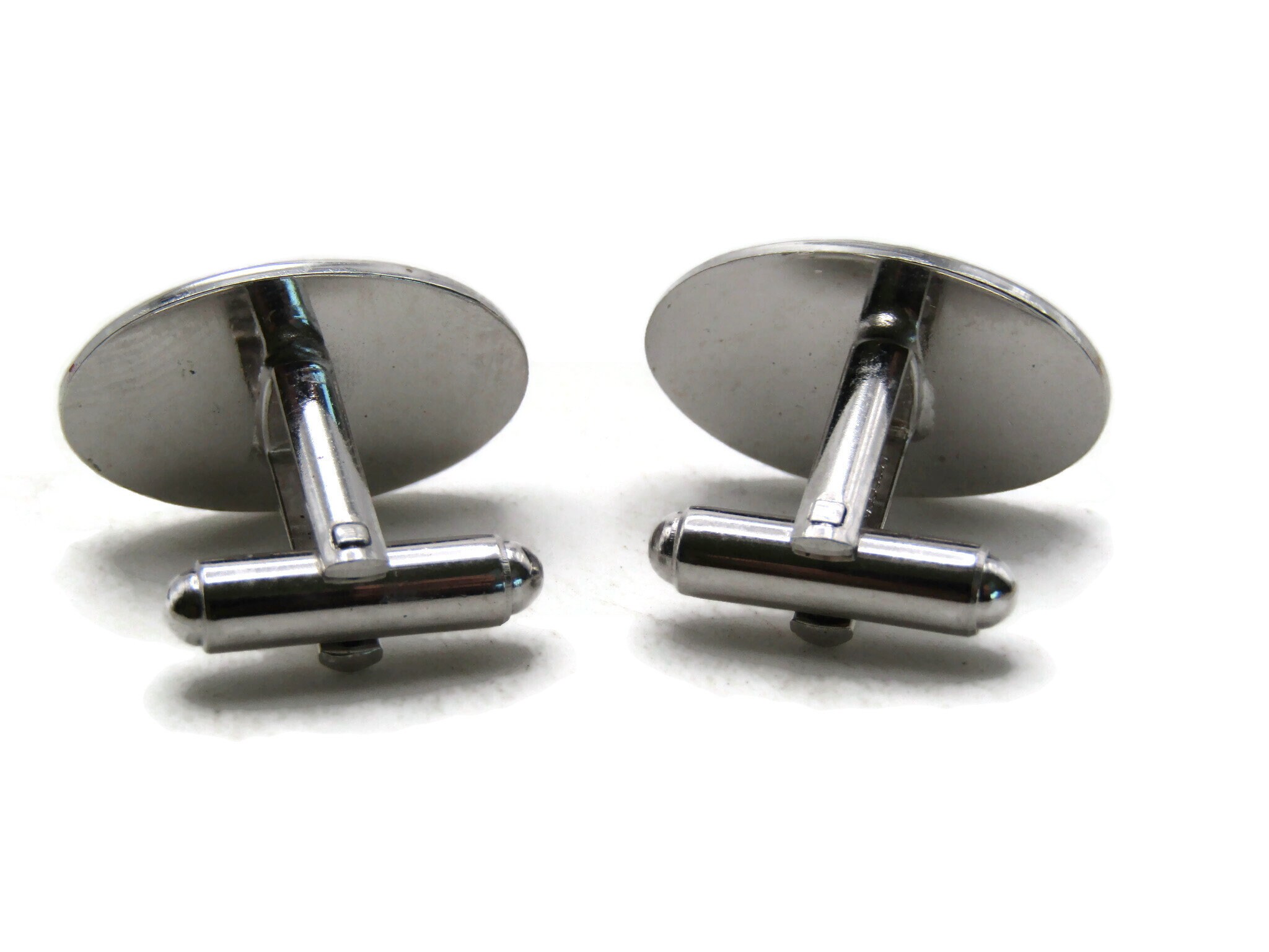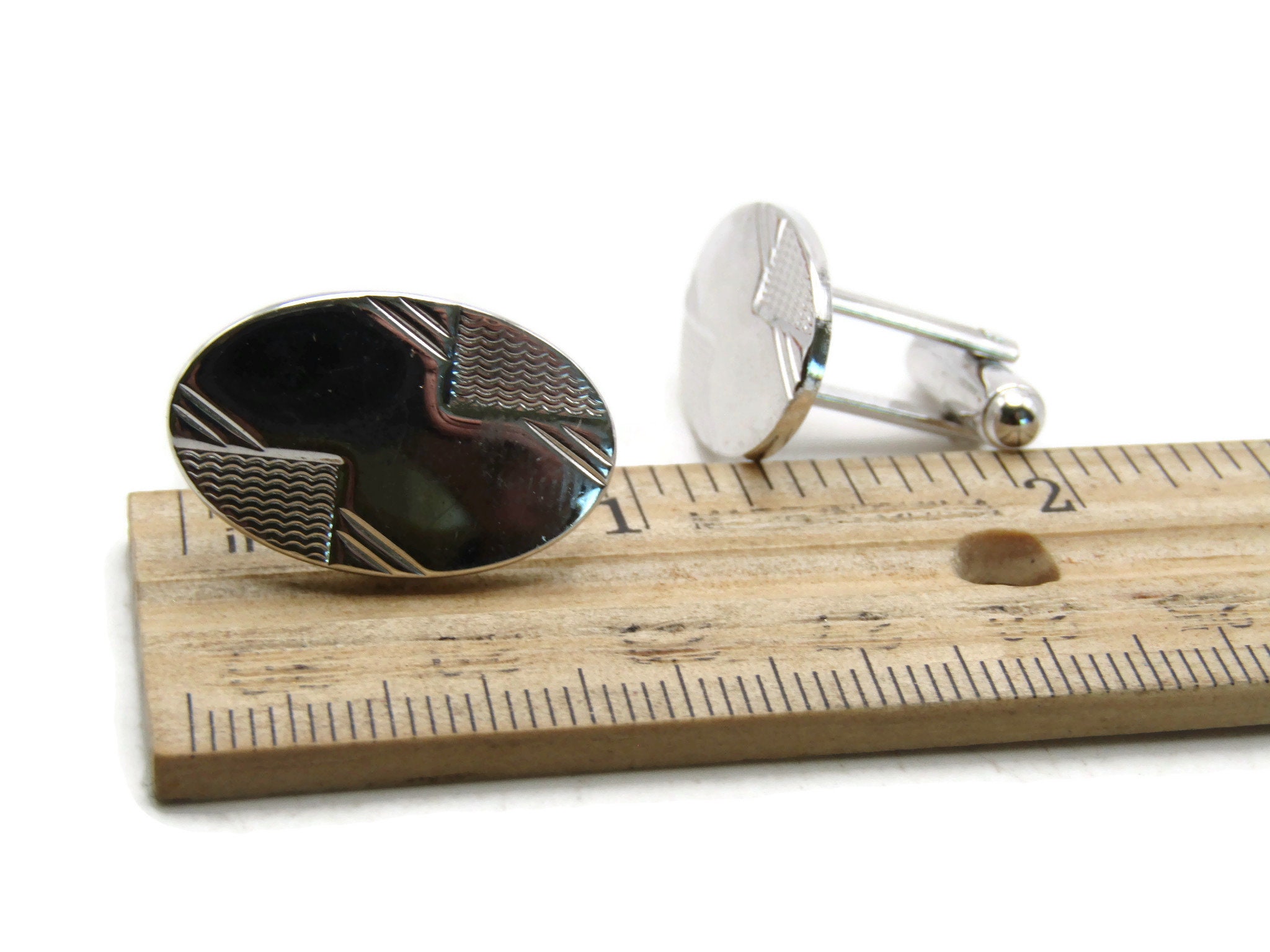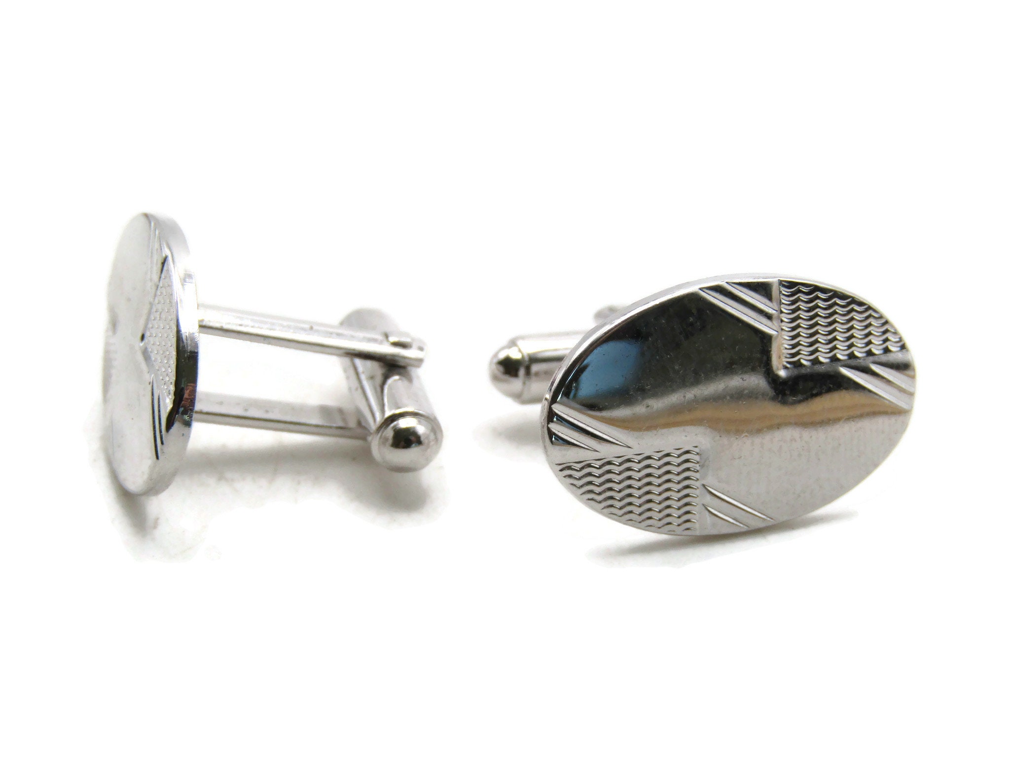 Oval Geometric Designs Cuff Links Men's Jewelry Silver Tone