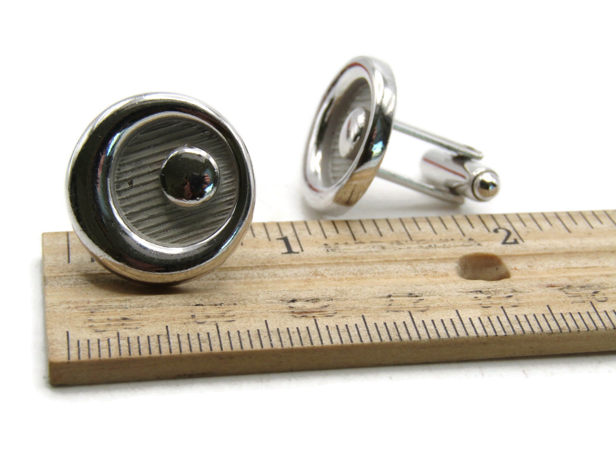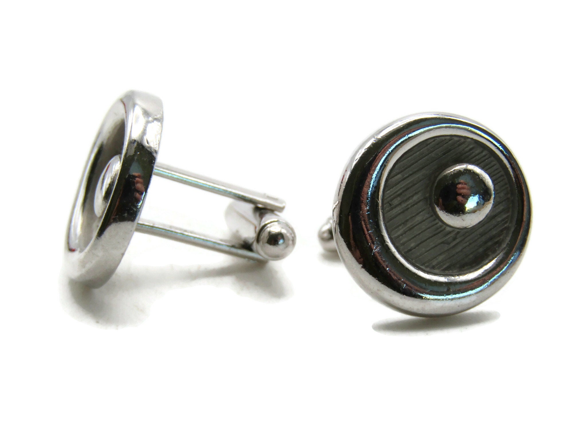Round Circle Designs And Textured Cuff Links Men's Jewelry Silver Tone