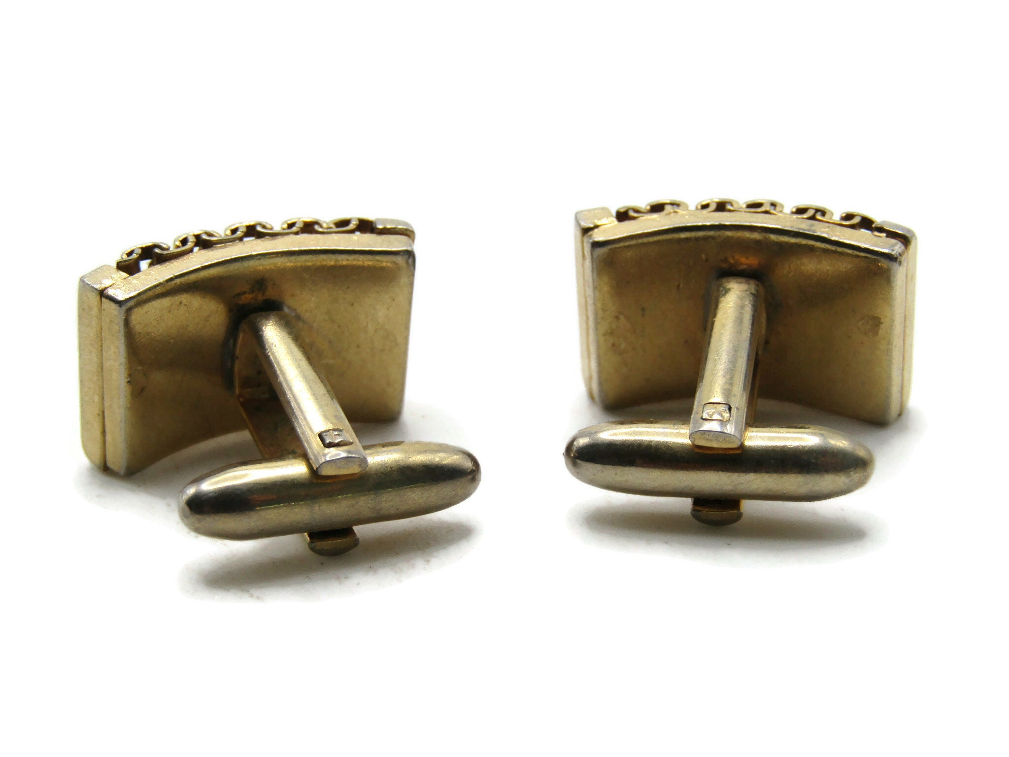 Curved Chain Front Cuff Links Men's Jewelry Gold Tone