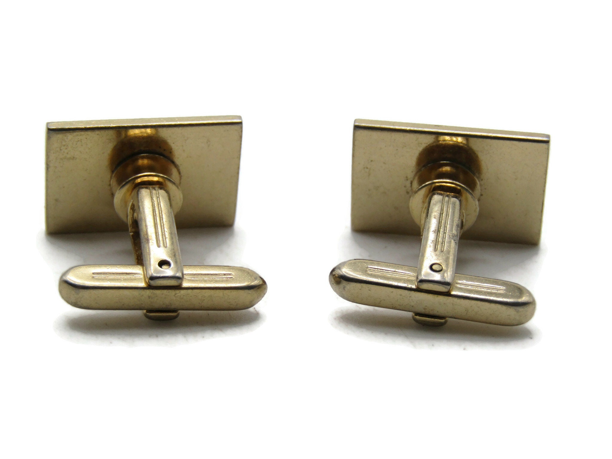Horizontal Lines Rectangle Cuff Links Men's Jewelry Gold Tone