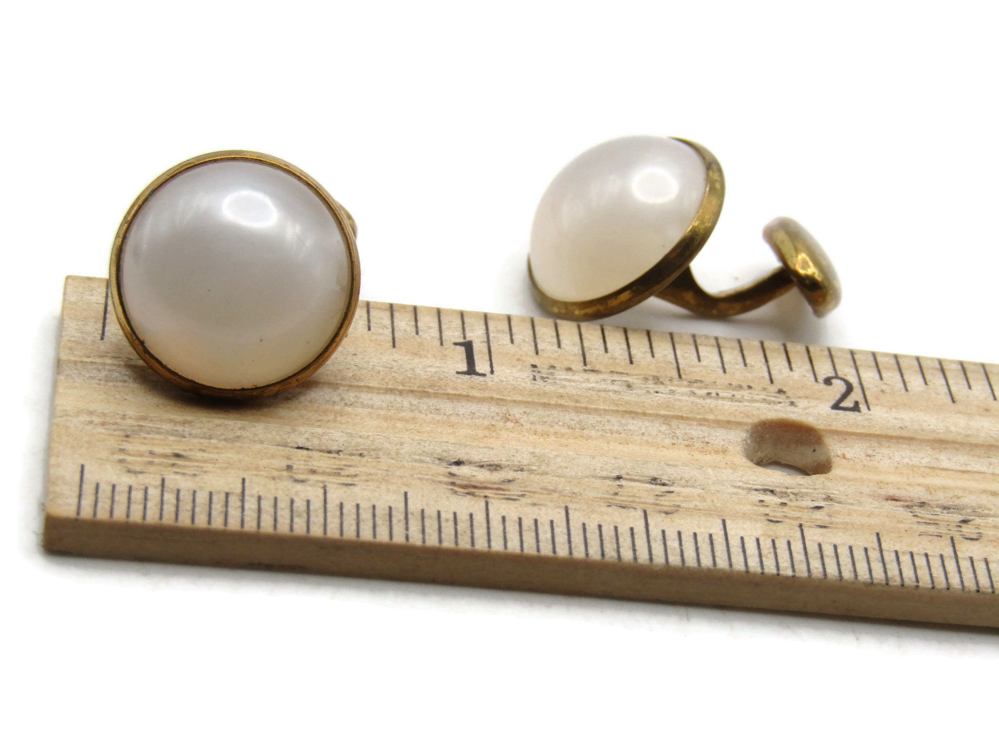 Round White Stone Inlay Links Men's Jewelry Gold Tone