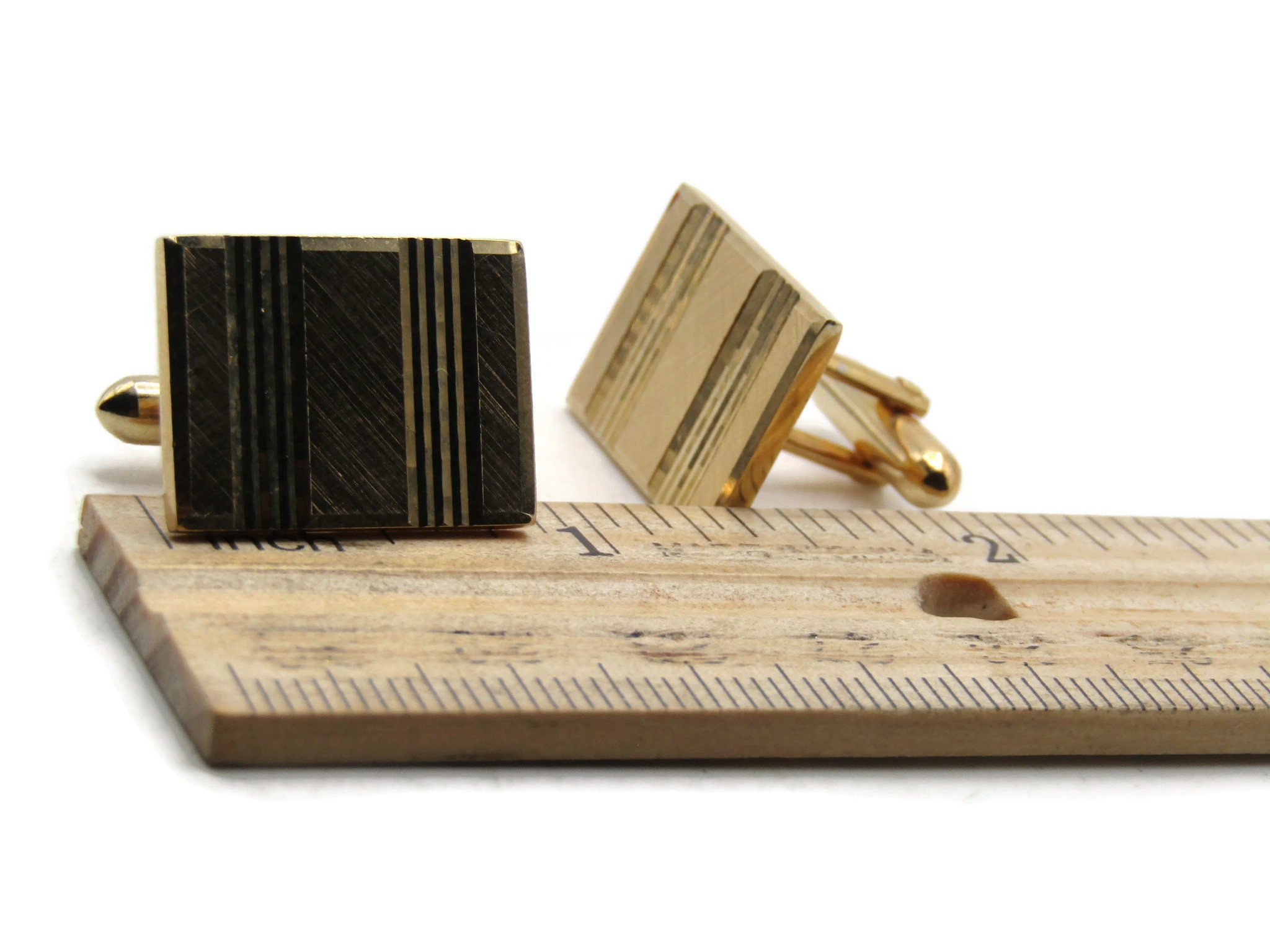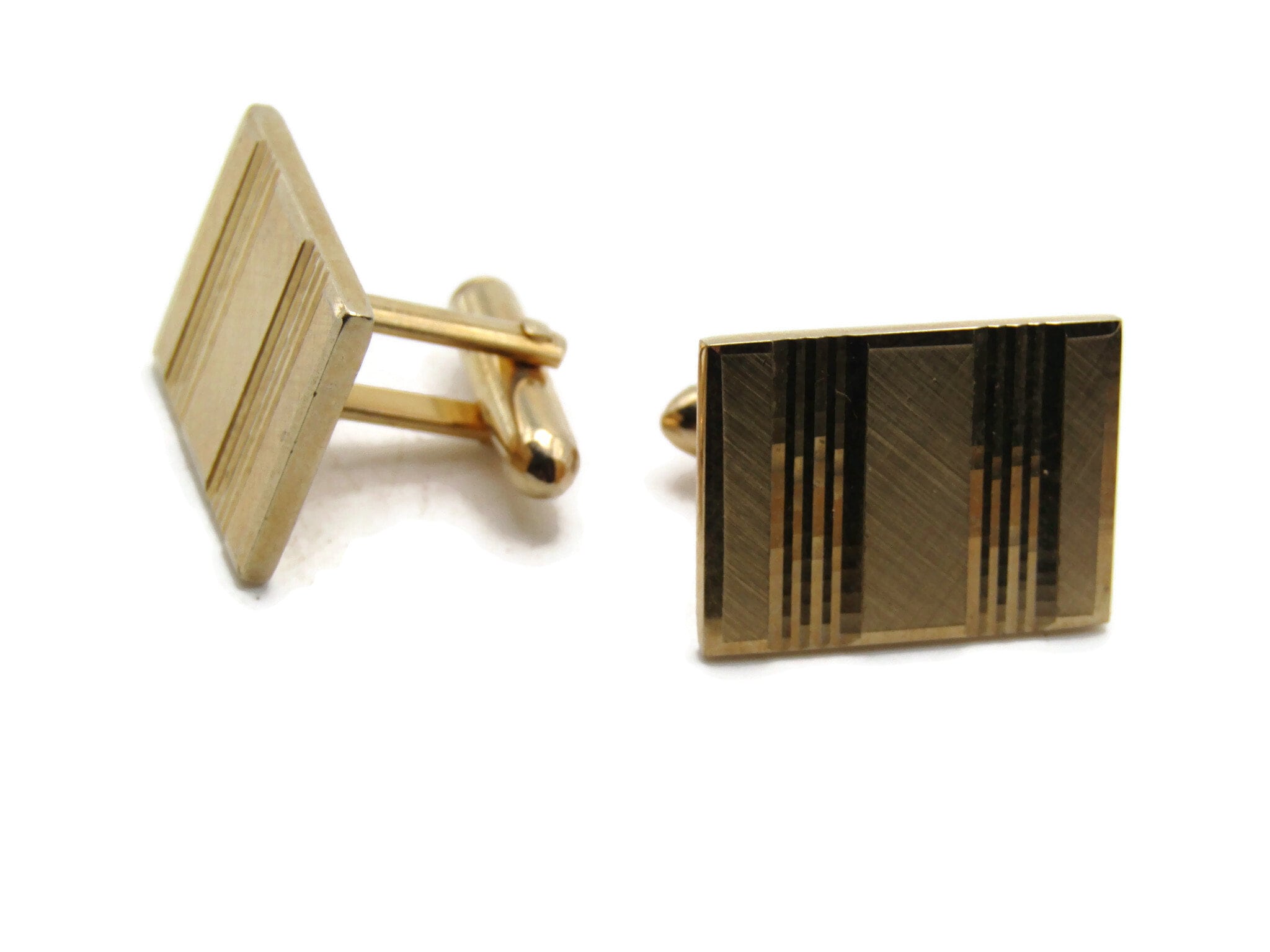 Vertical Lines Rectangle Cuff Links Men's Jewelry Gold Tone