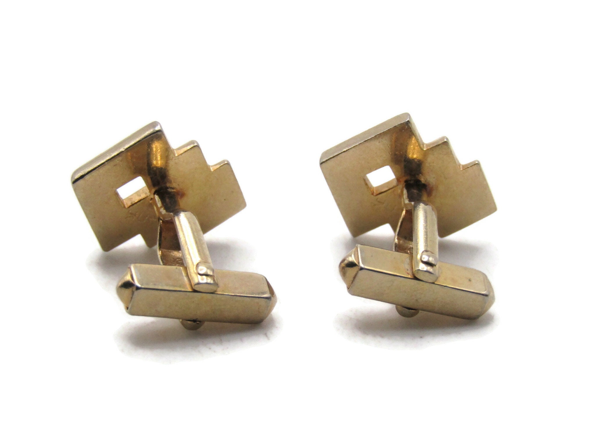 Overlapping Squares And Cutout Cuff Links Men's Jewelry Gold Tone