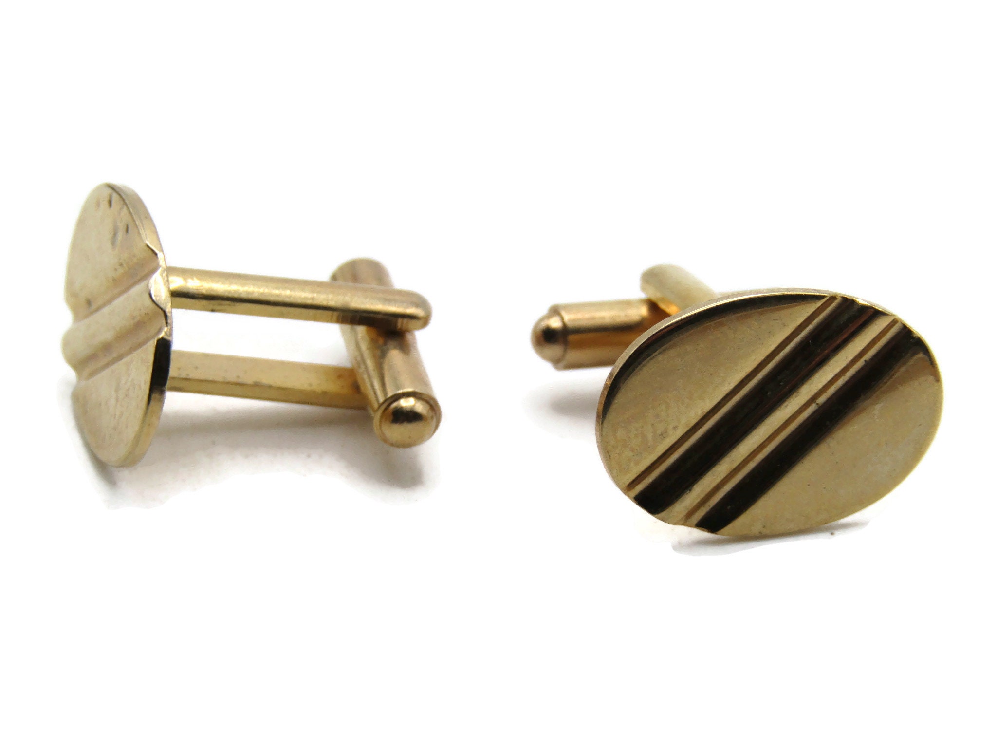 Diagonal Lines Oval Cuff Links Men's Jewelry Gold Tone