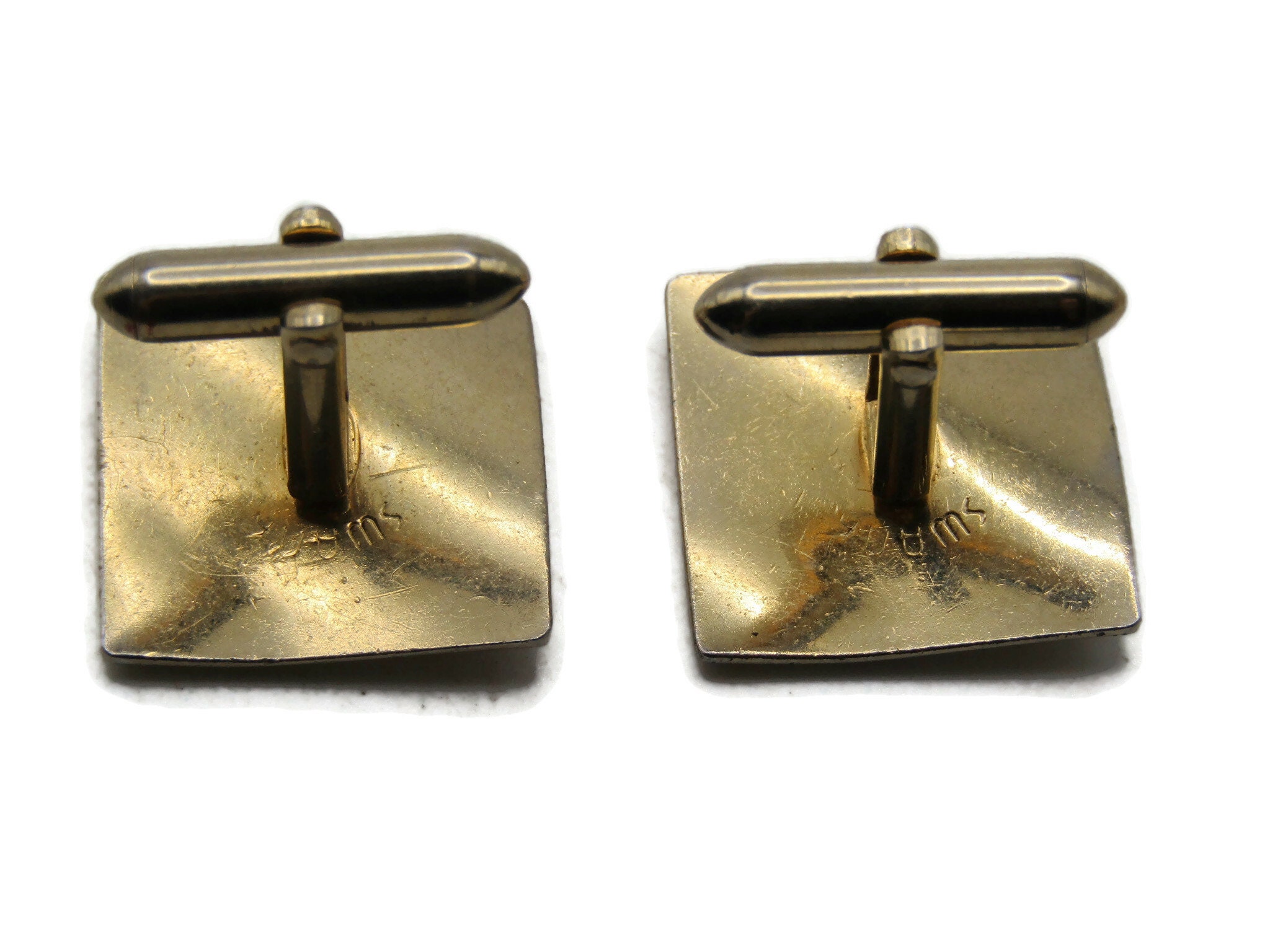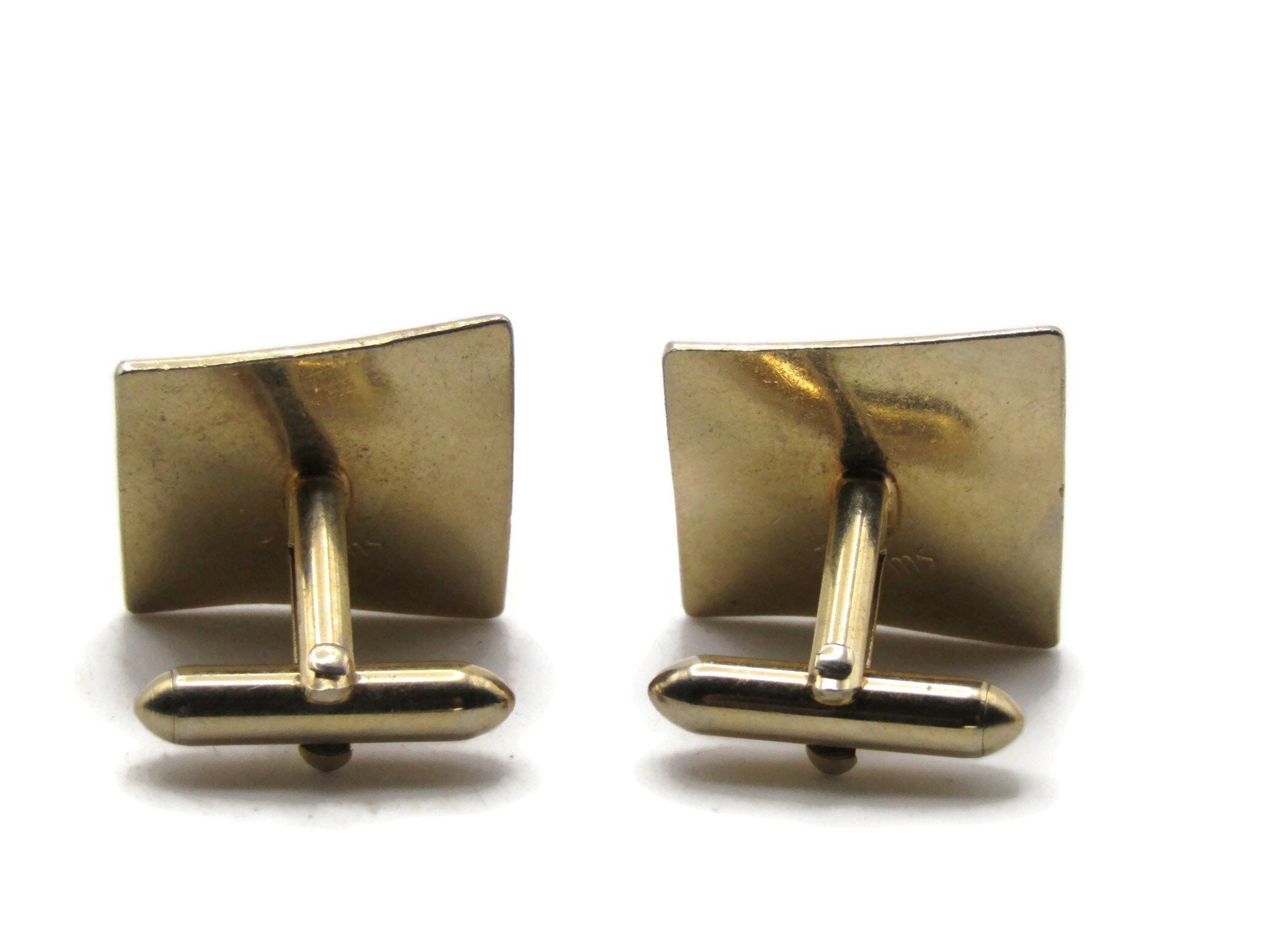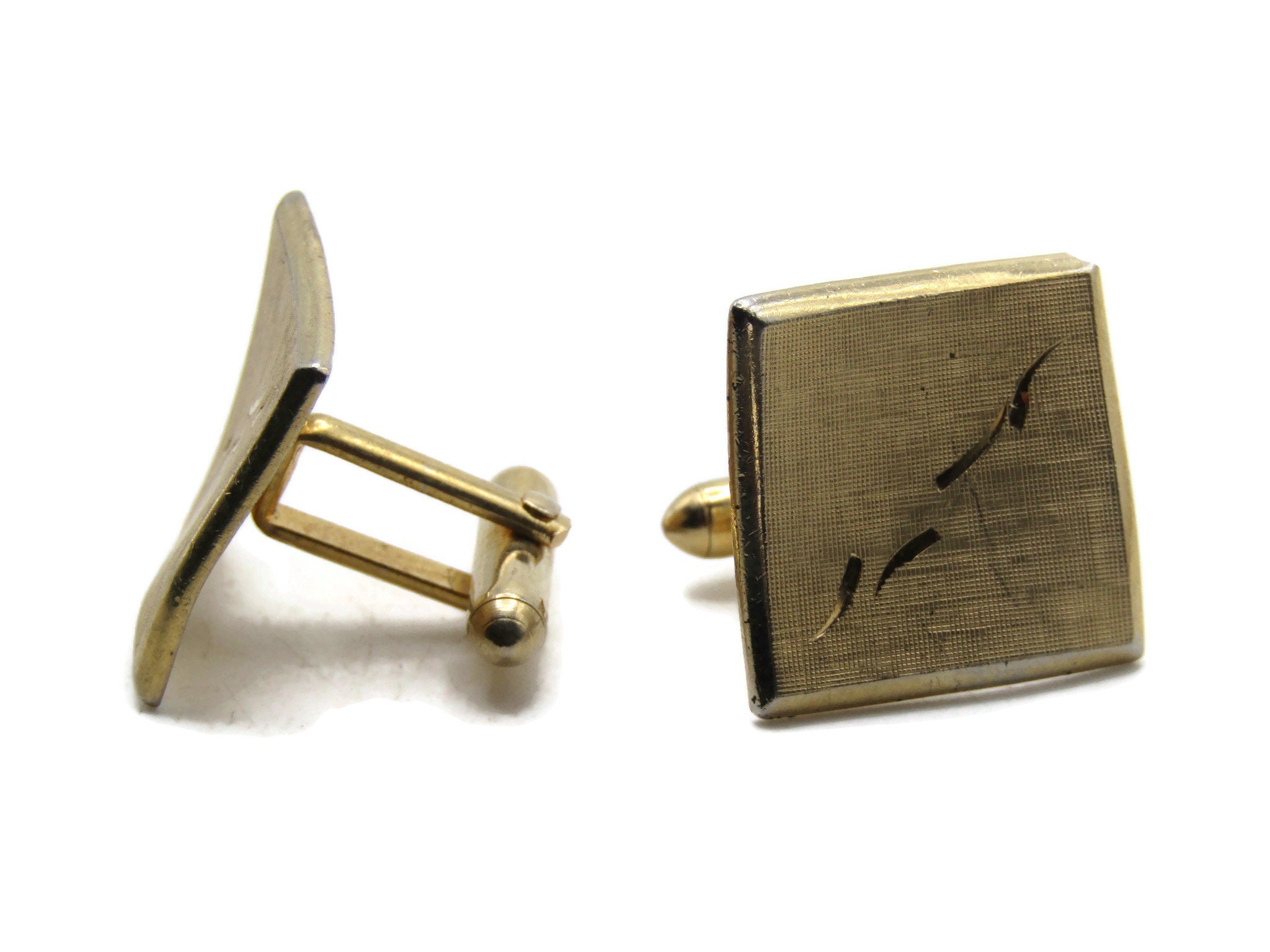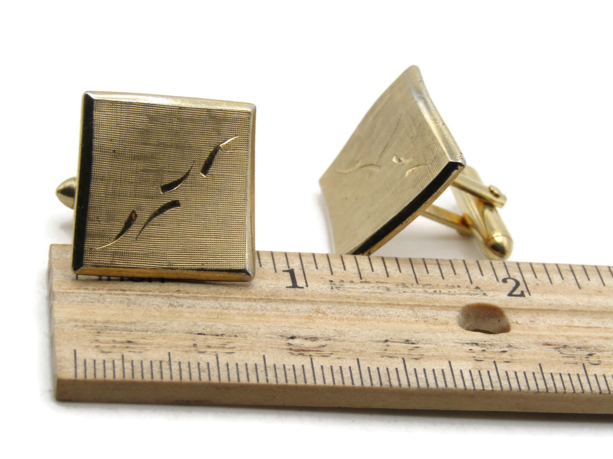 Curved Square Etched Textured Cuff Links Men's Jewelry Gold Tone