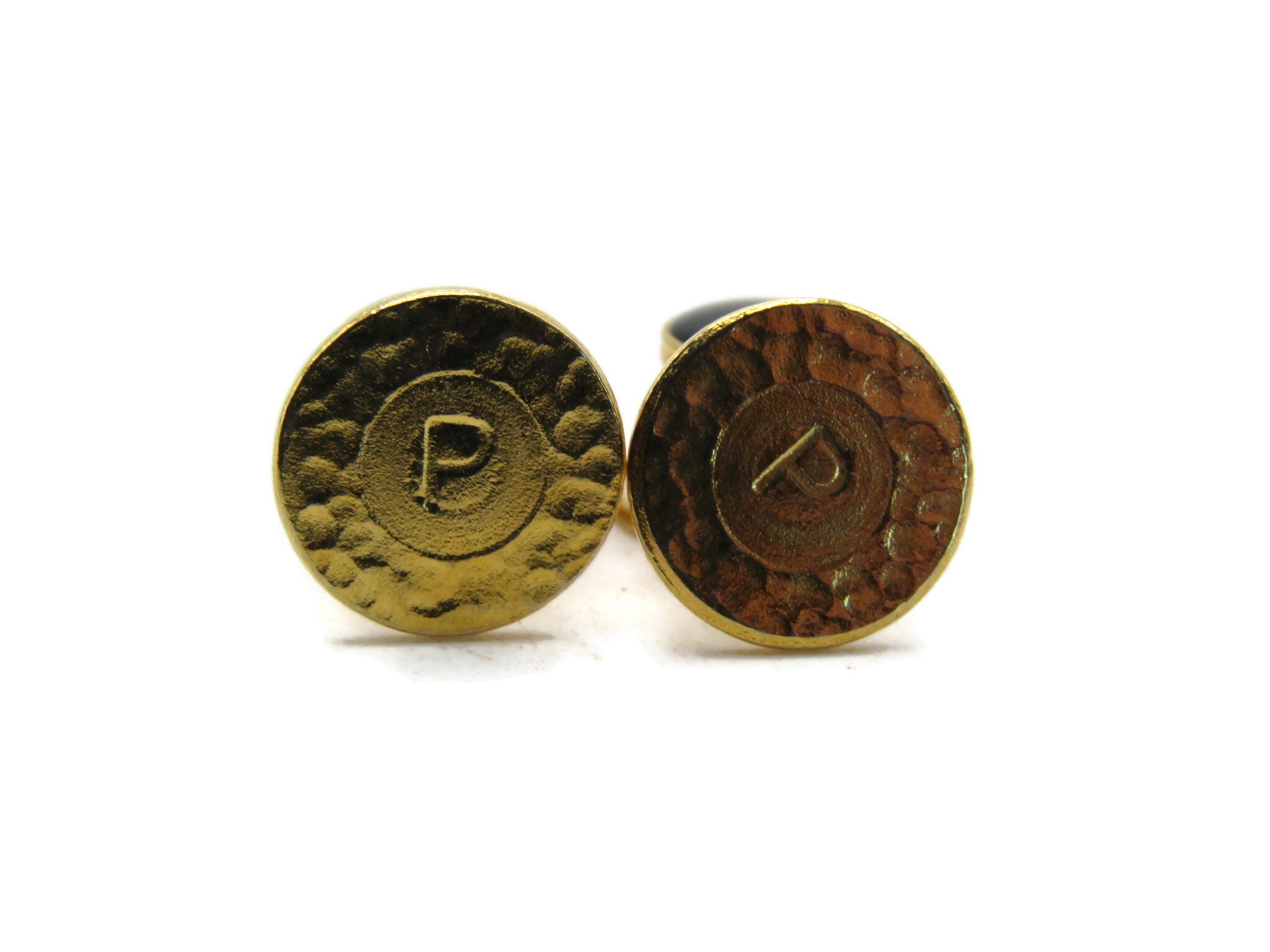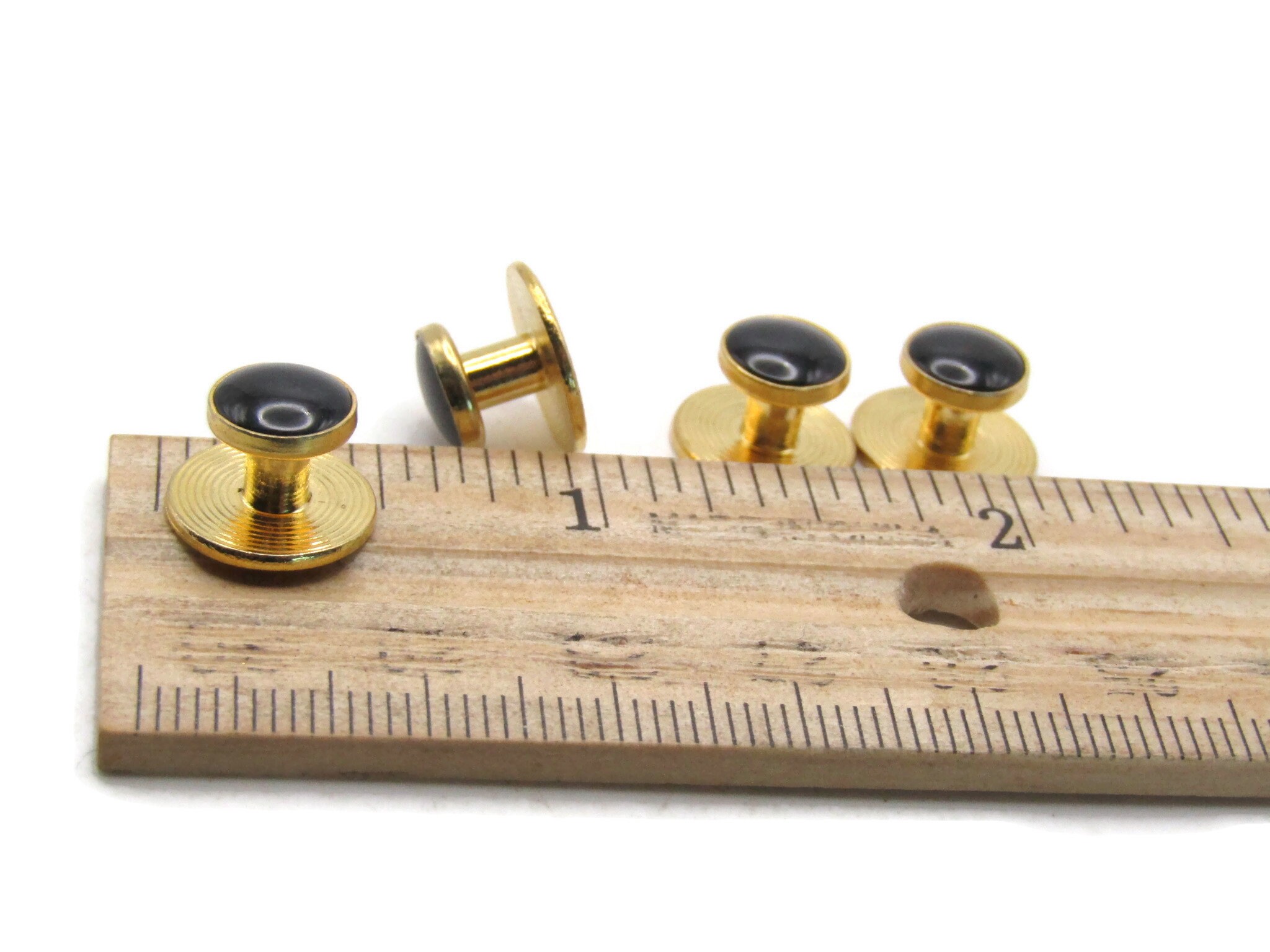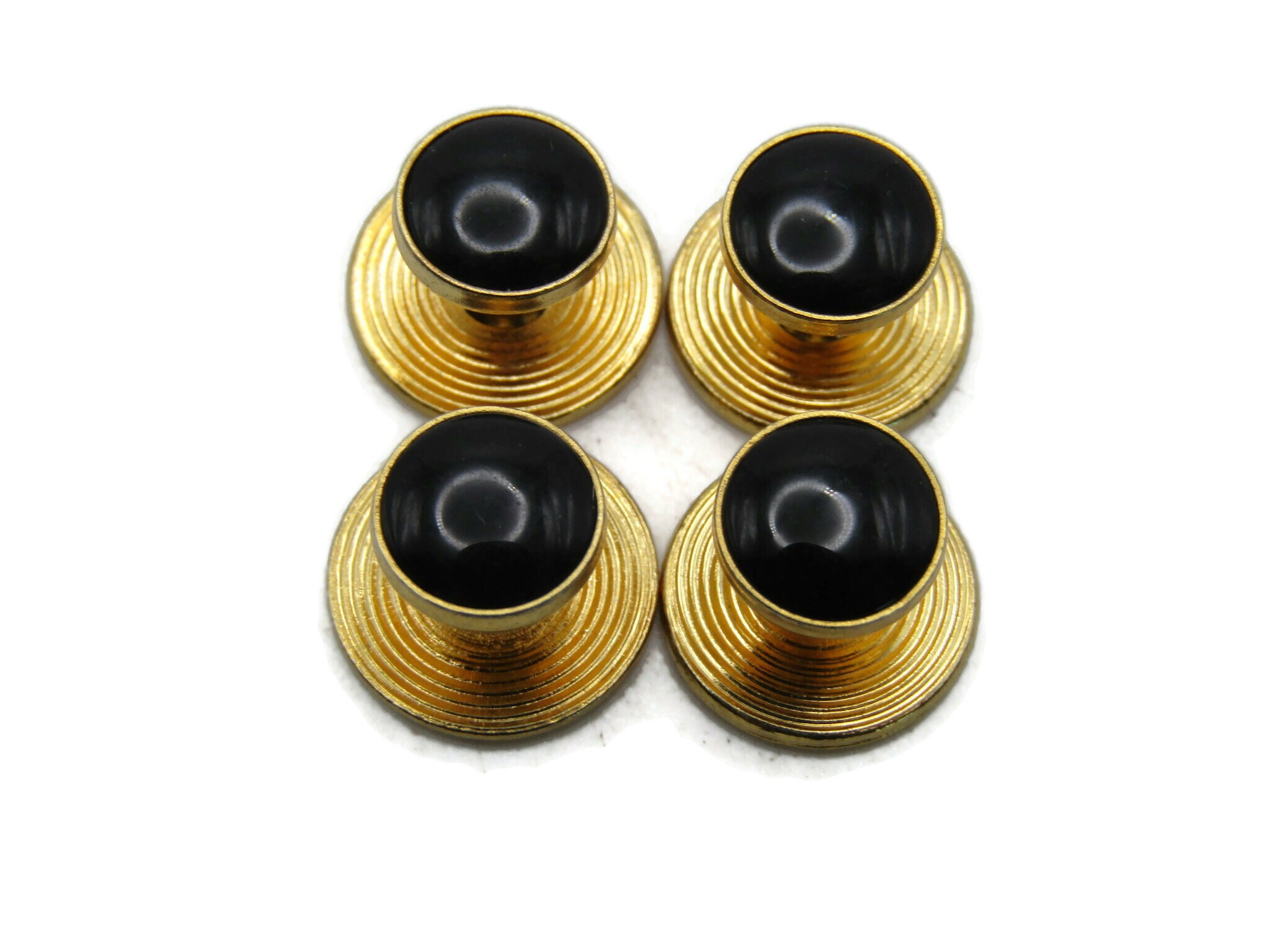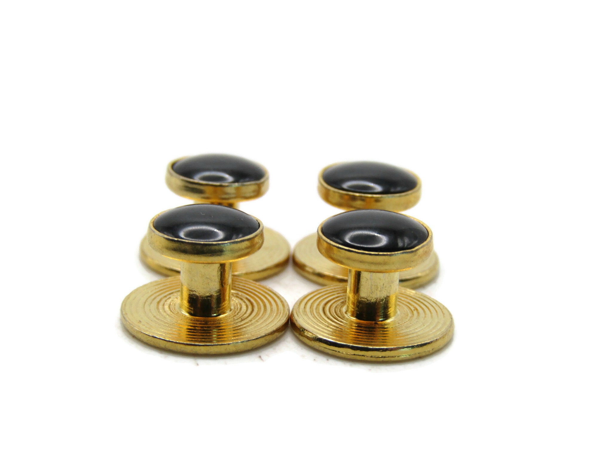 Round Black Stone Inlay Cuff Link Set Of Four Men's Jewelry Gold Tone