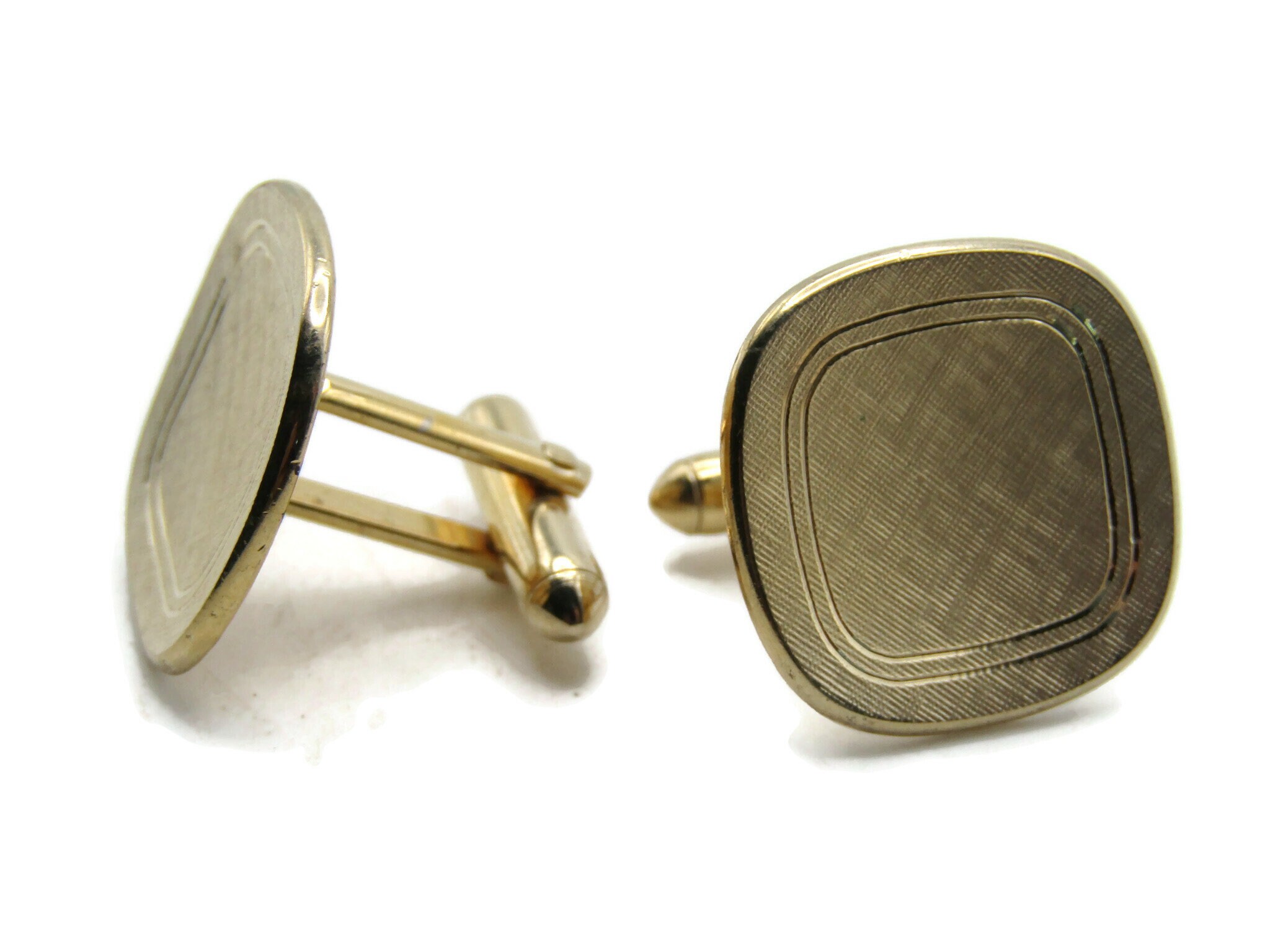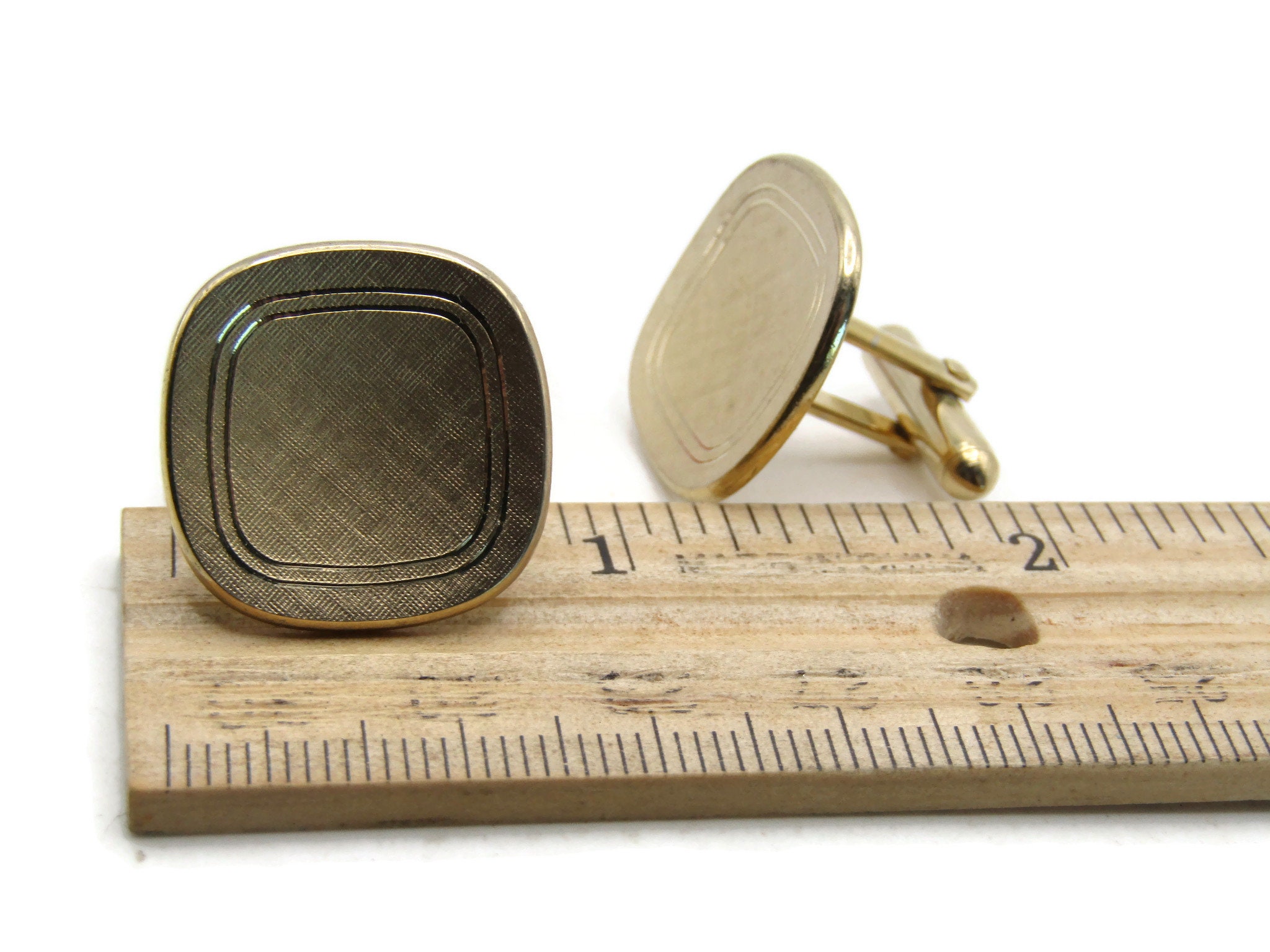 Rounded Square Brushed Finish Cuff Links Men's Jewelry Gold Tone