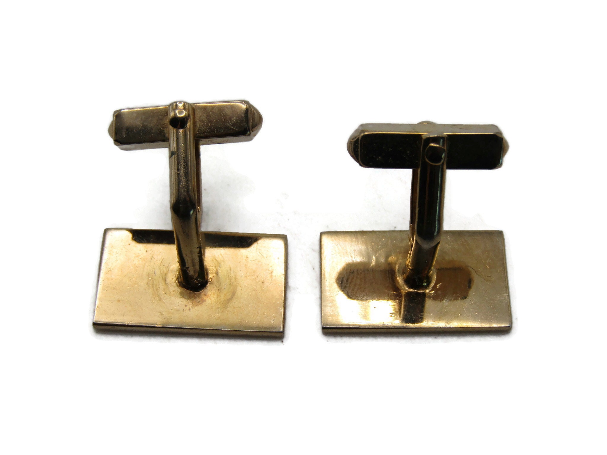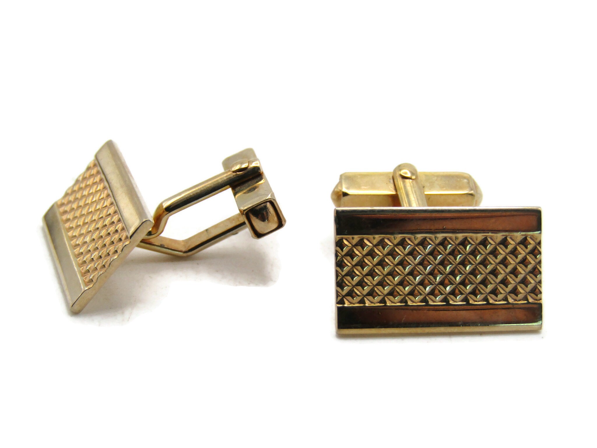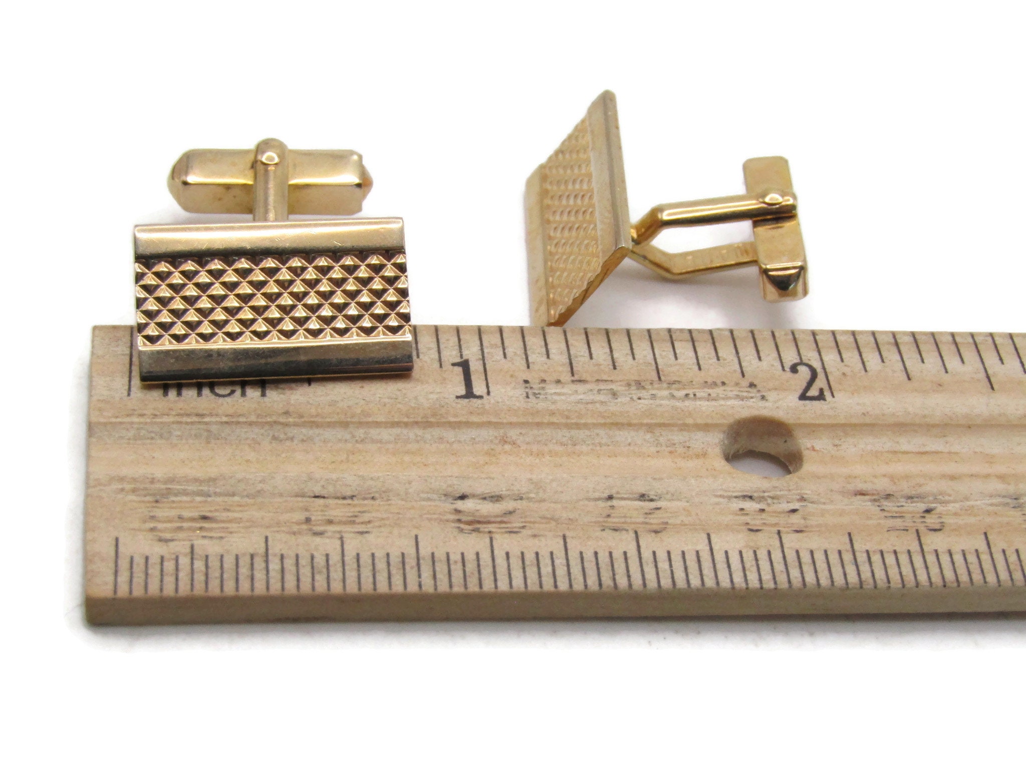 Diamond Textured Rectangle Cuff Links Men's Jewelry Gold Tone