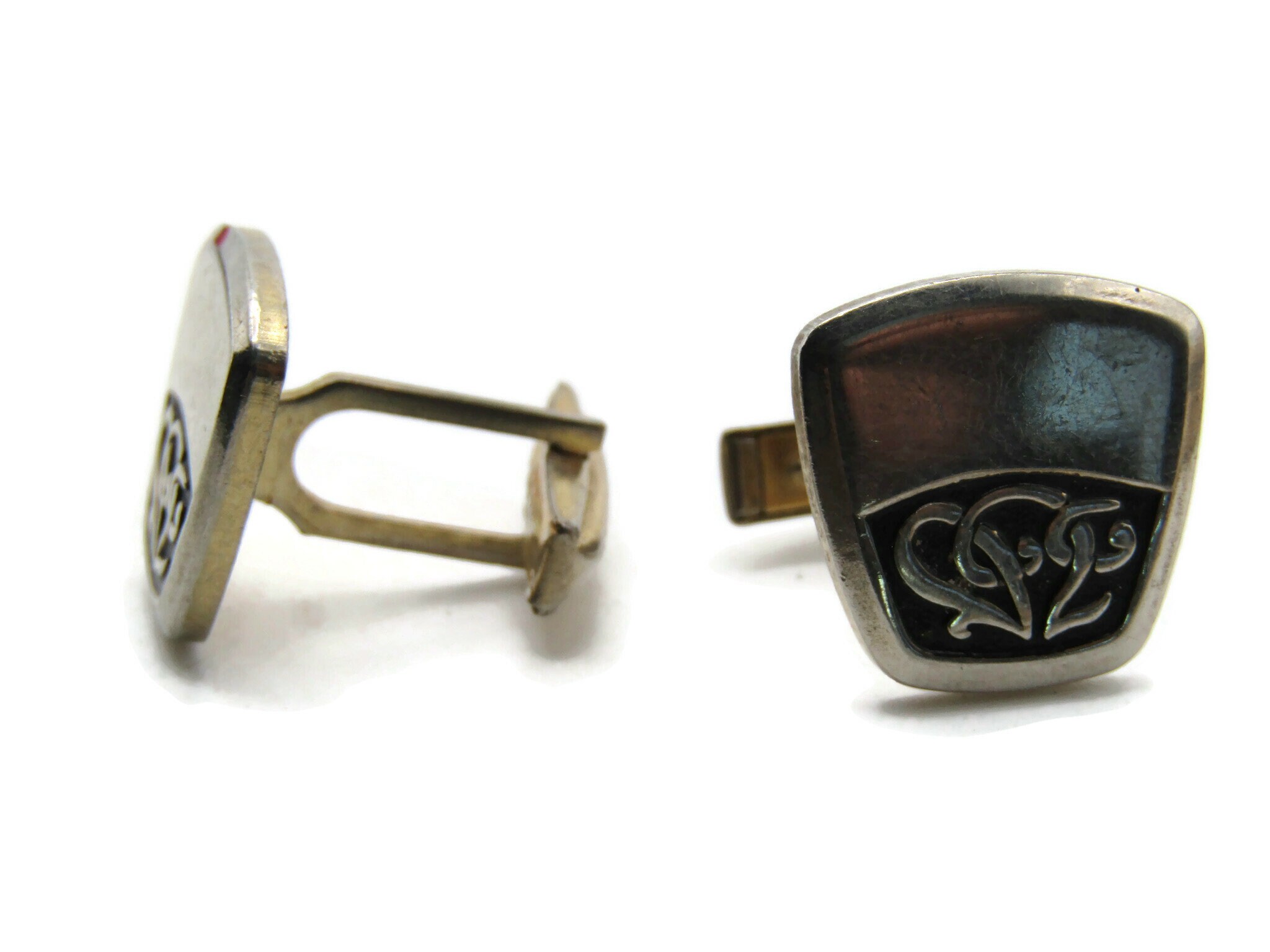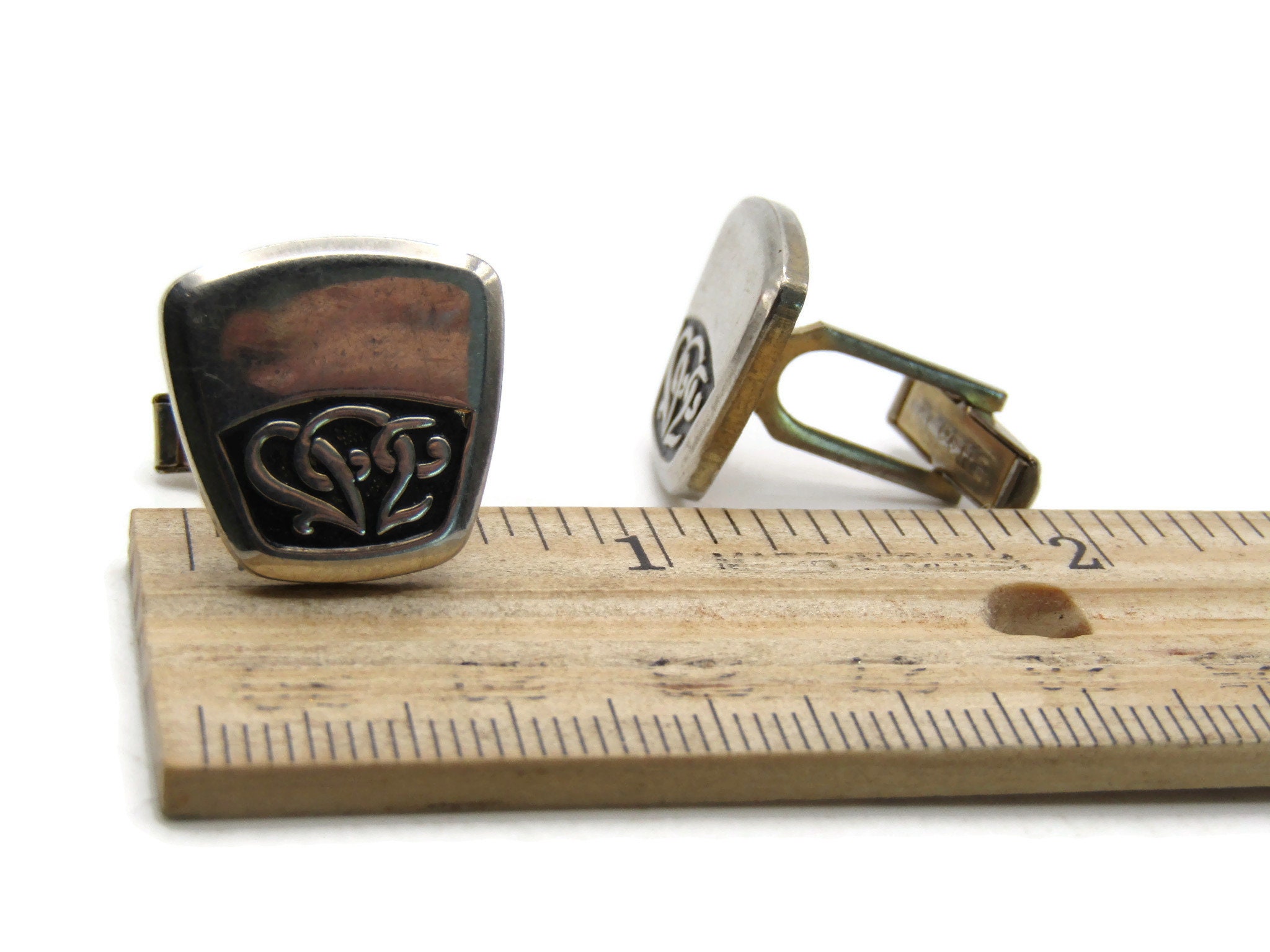 Decorative Motif Cuff Links Men's Jewelry Black And Gold Tone