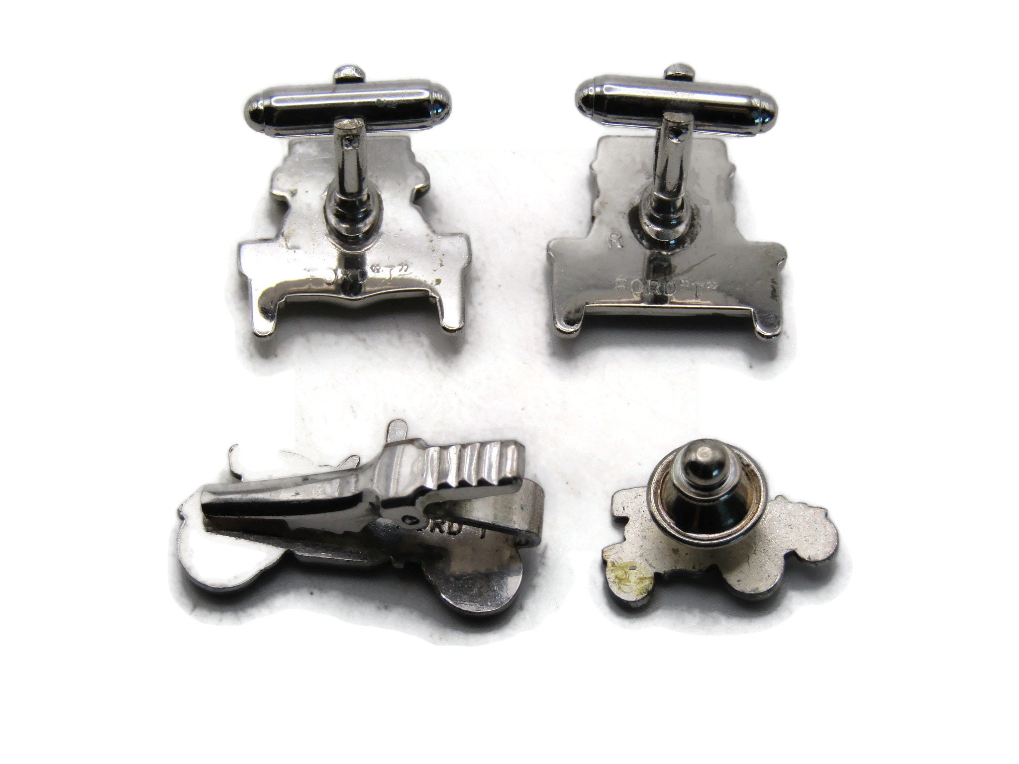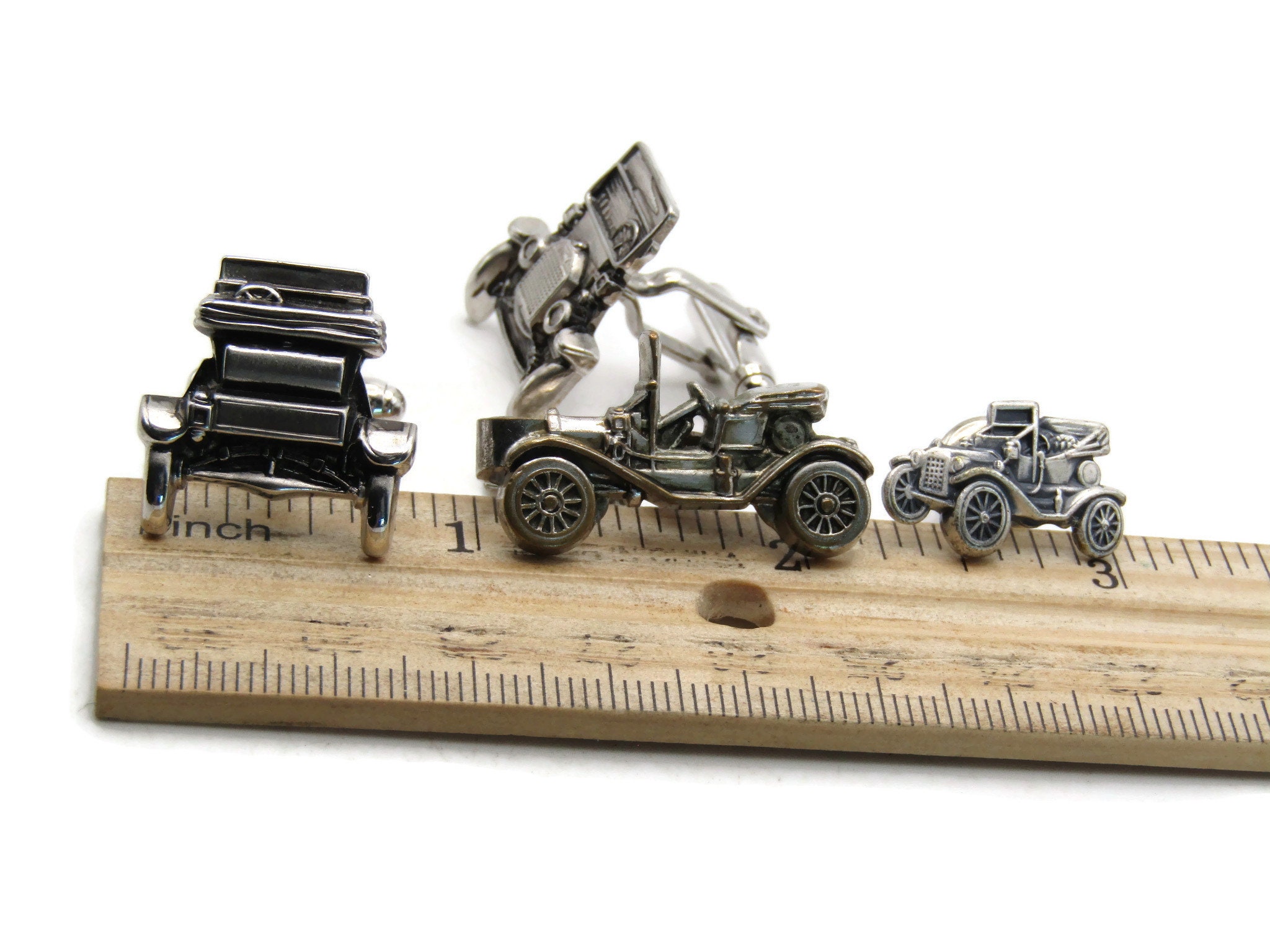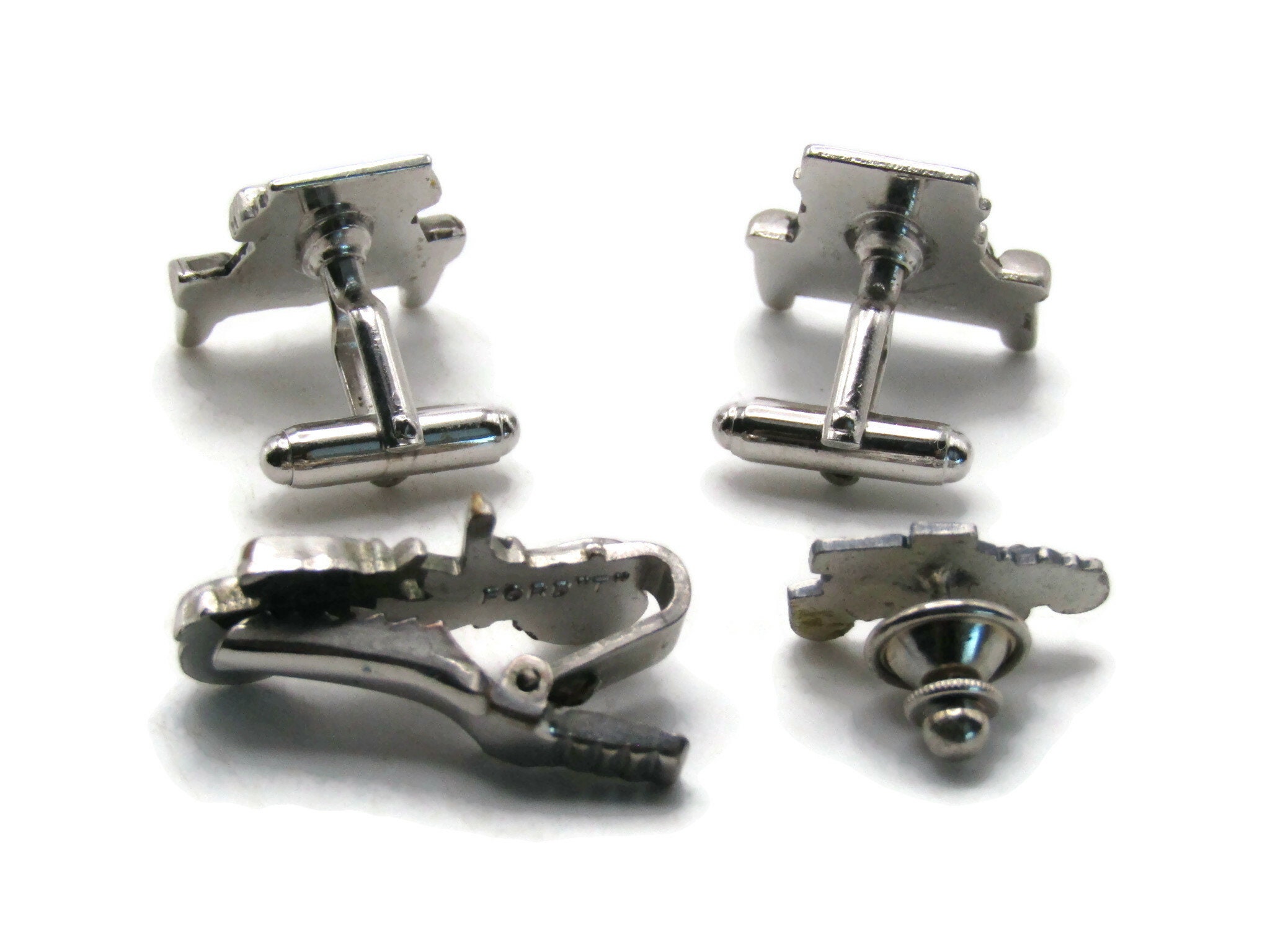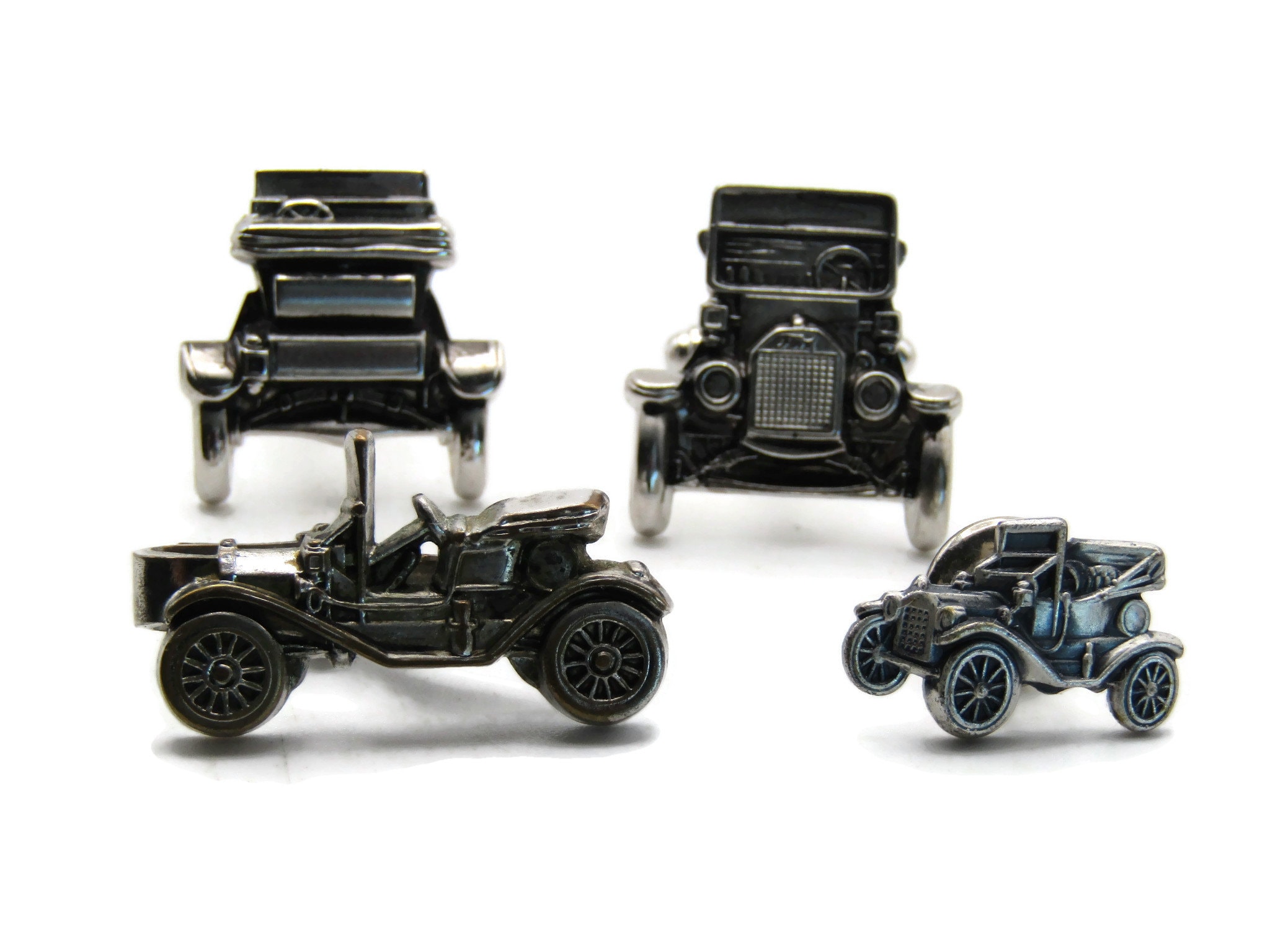 Vintage Car Cuff Links Tie Clip And Tie Pin Set Men's Jewelry Silver Tone
