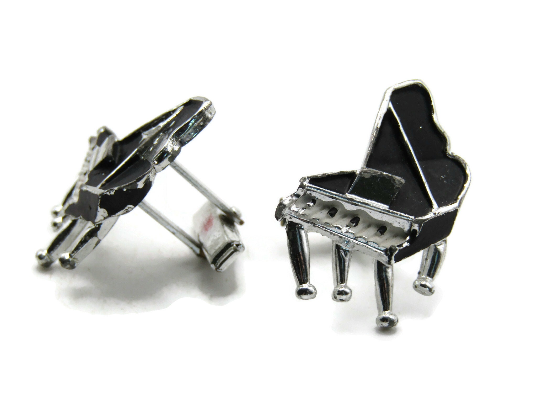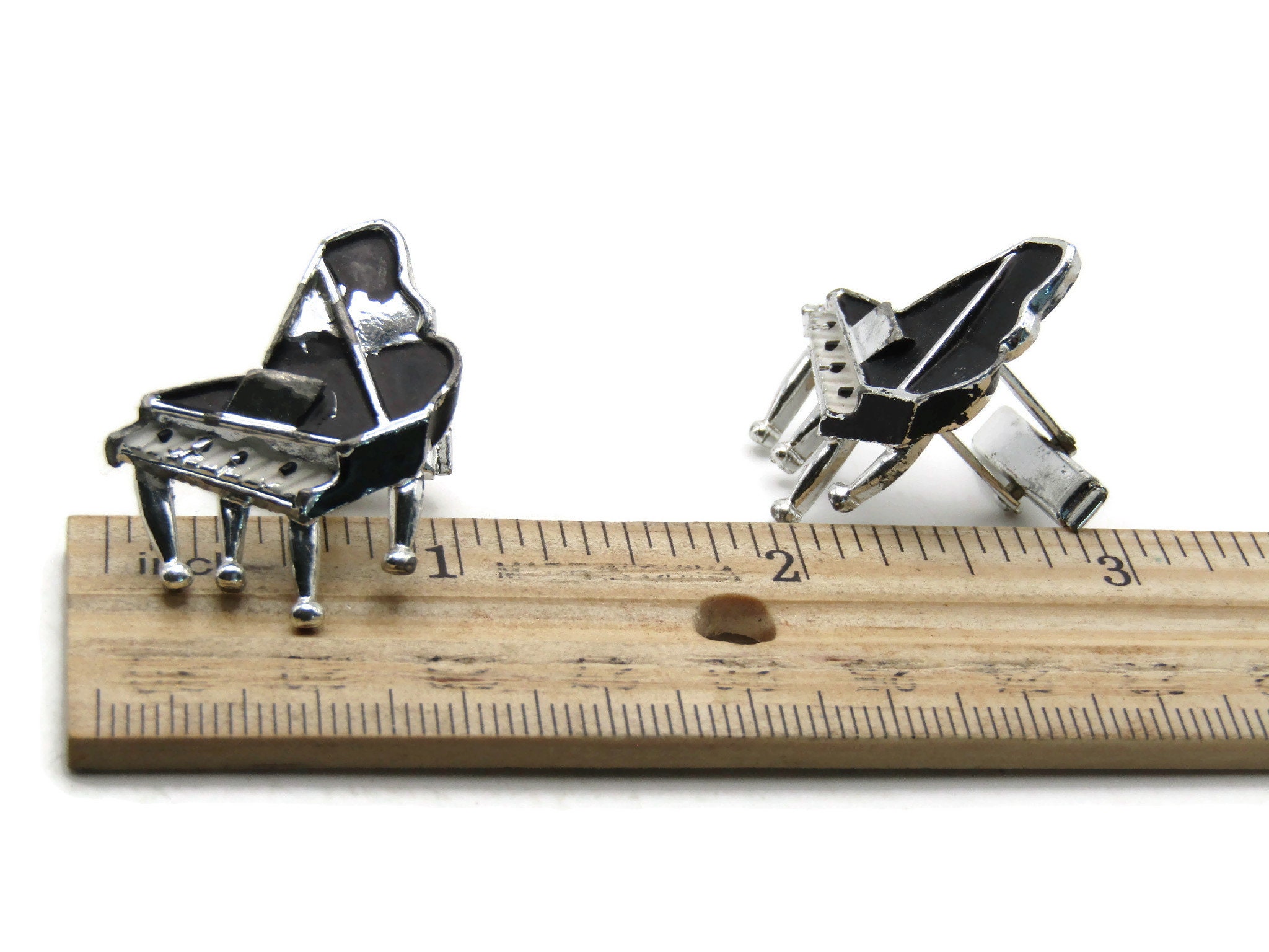 Grand Pianos Cuff Links Men's Jewelry Black And Silver Tone