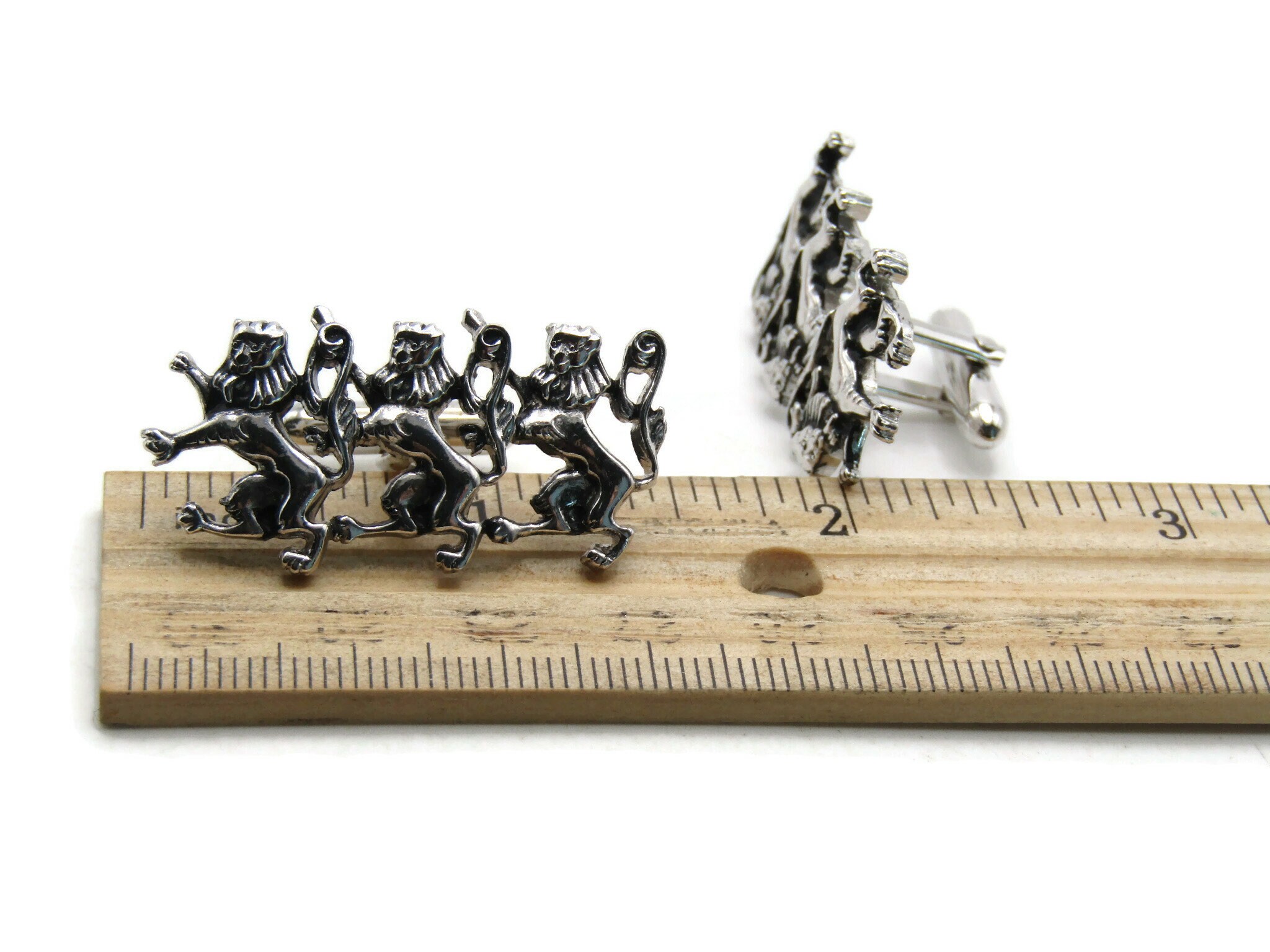 Fighting Lions Cuff Links Men's Jewelry Silver Tone