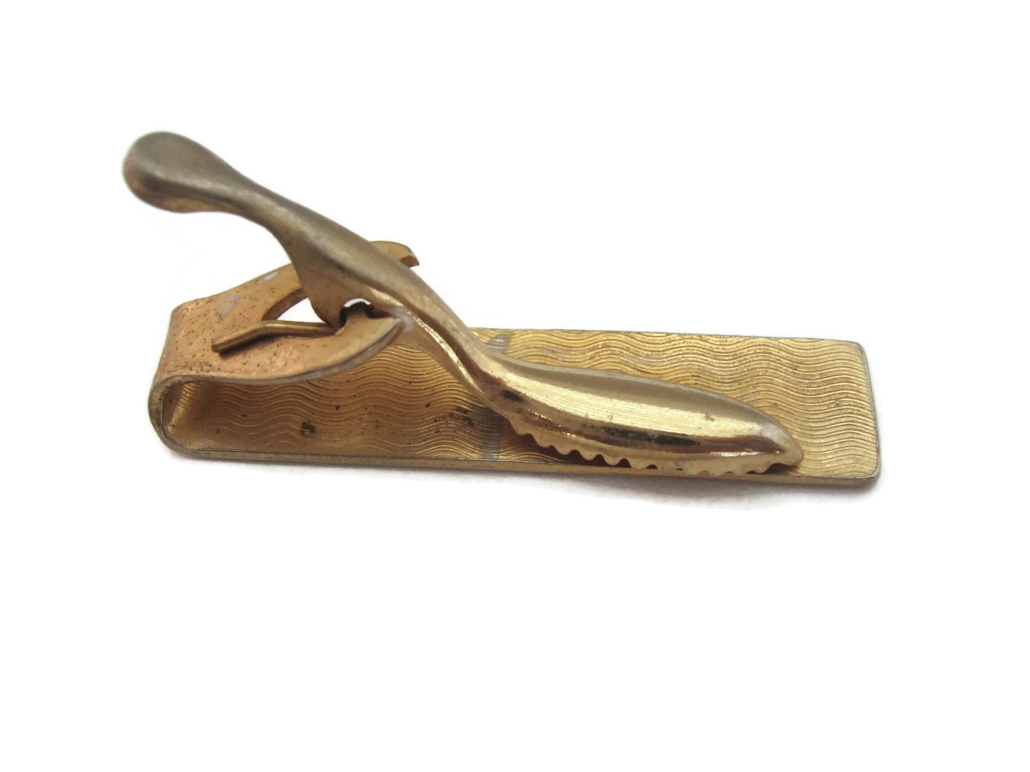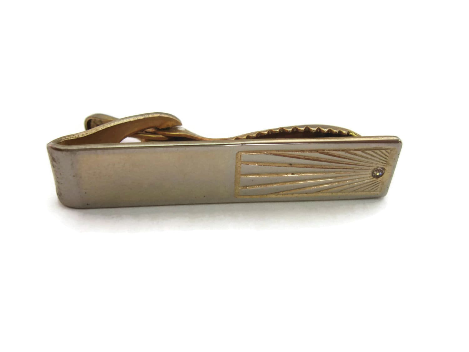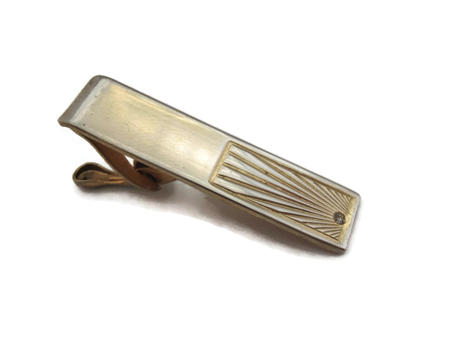 Vintage Men's Tie Bar Clip Jewelry: Faded Gold Tone Clear Jewel Burst Design