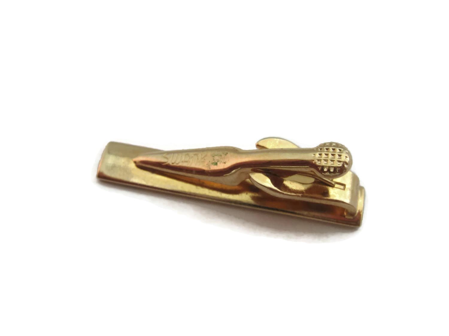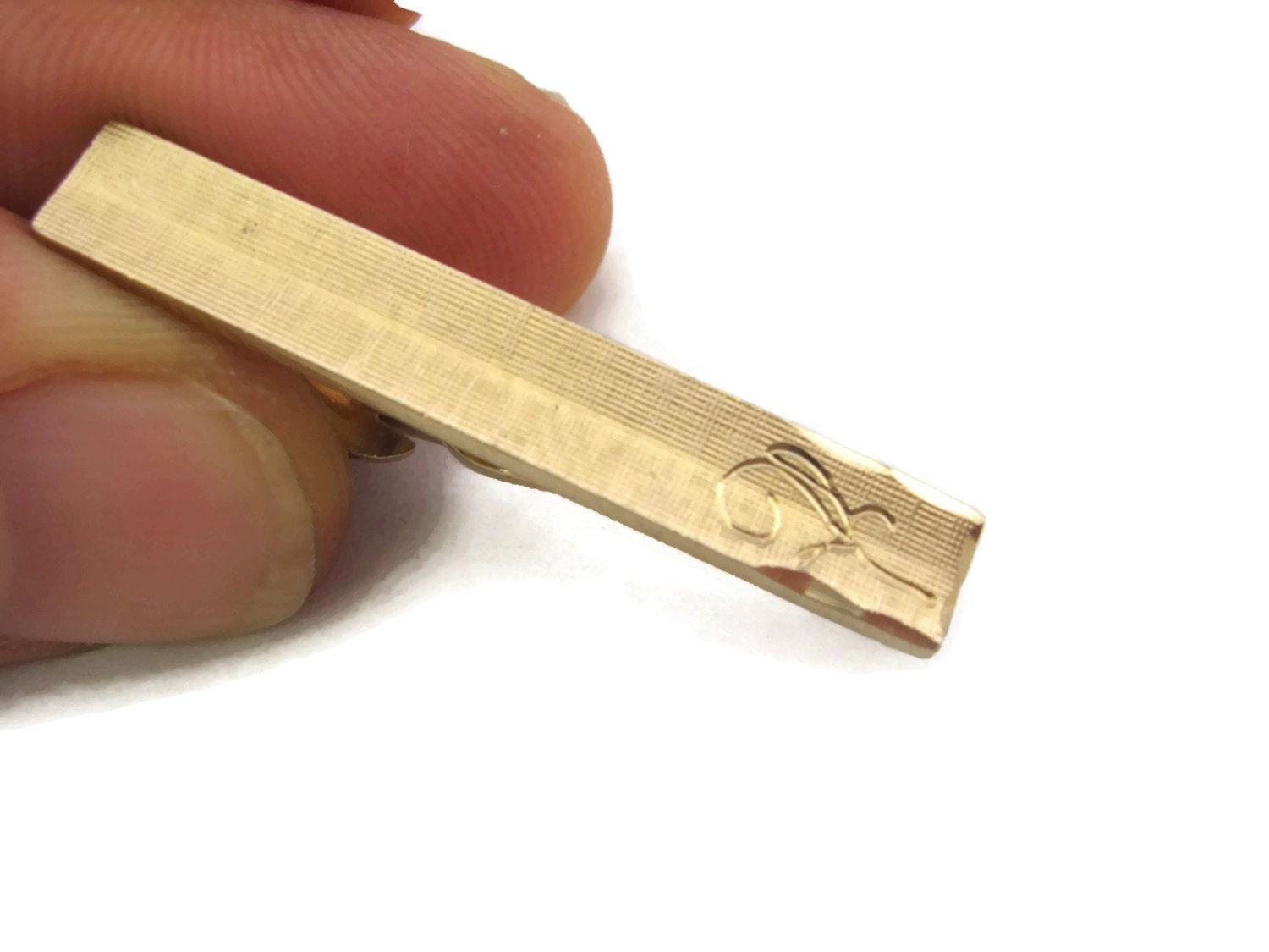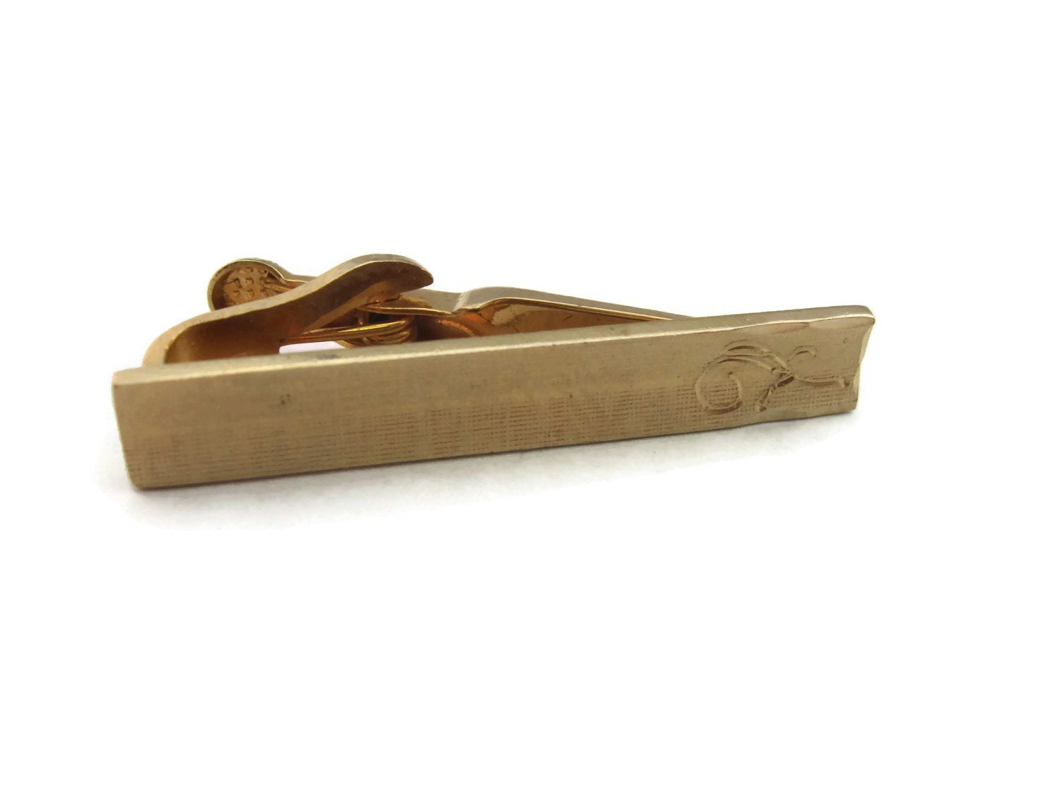 Vintage Men's Tie Bar Clip Jewelry: Textured Gold Tone Stem Etch Design