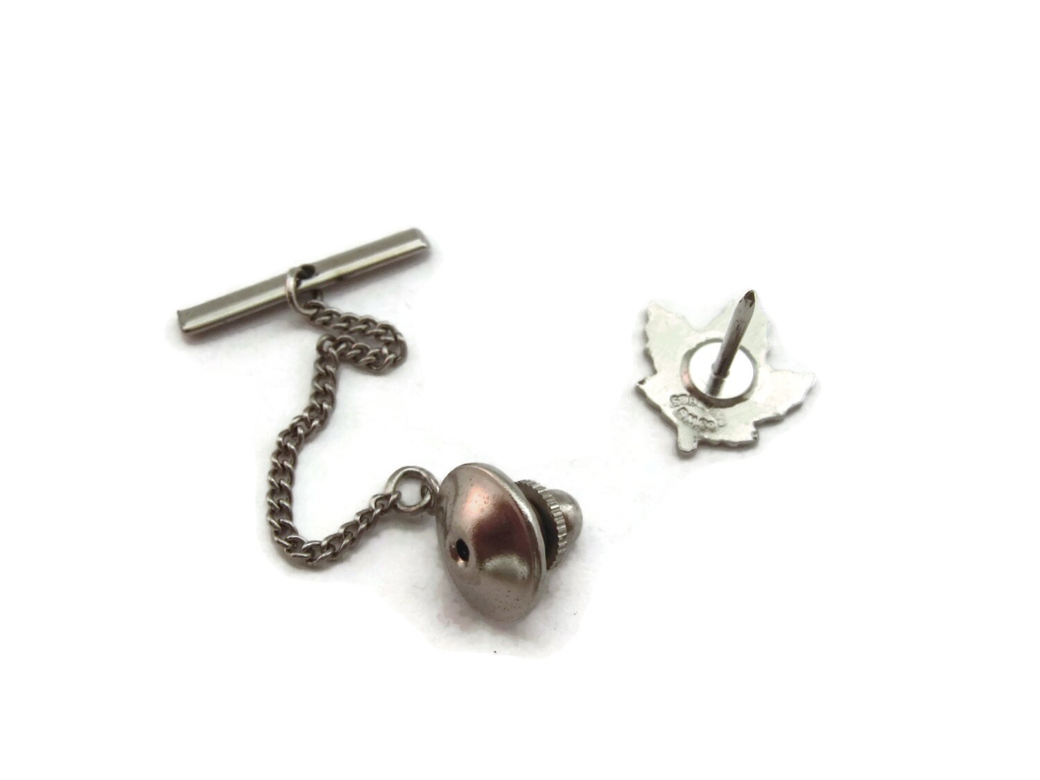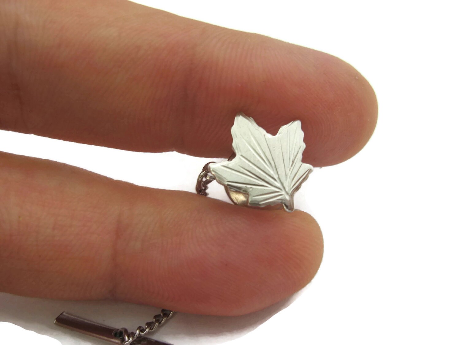 Vintage Men's Tie Tack Pin Jewelry: Sterling Silver Leaf