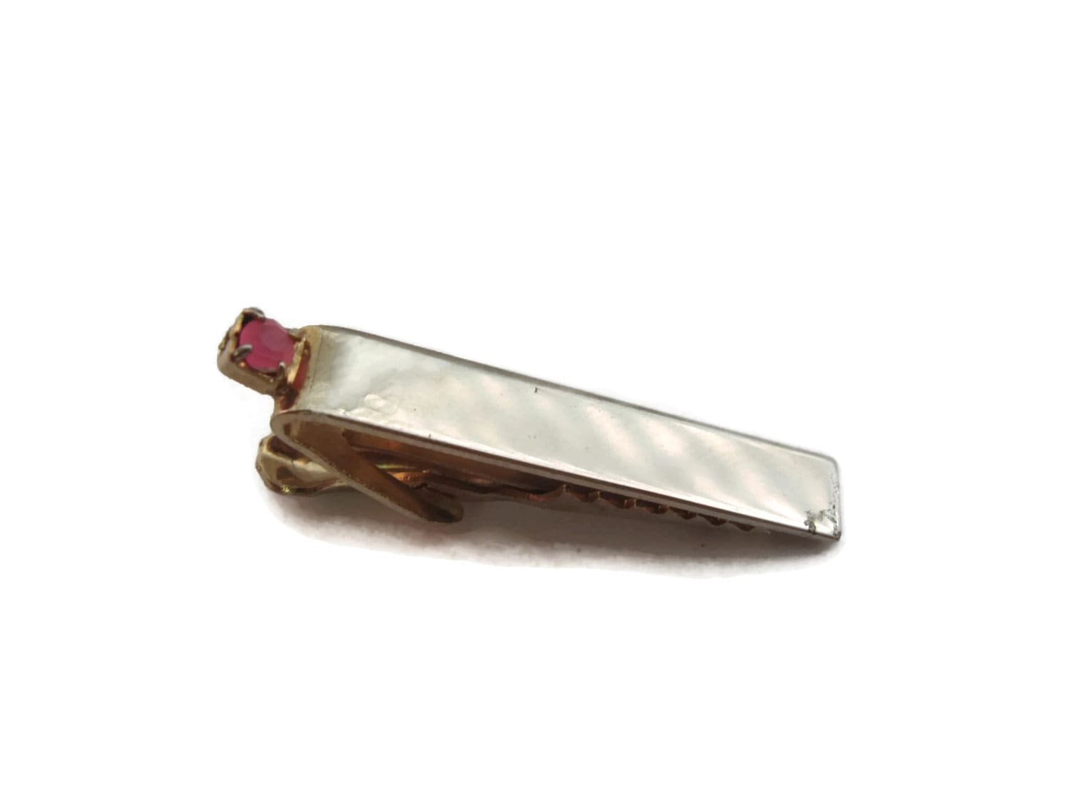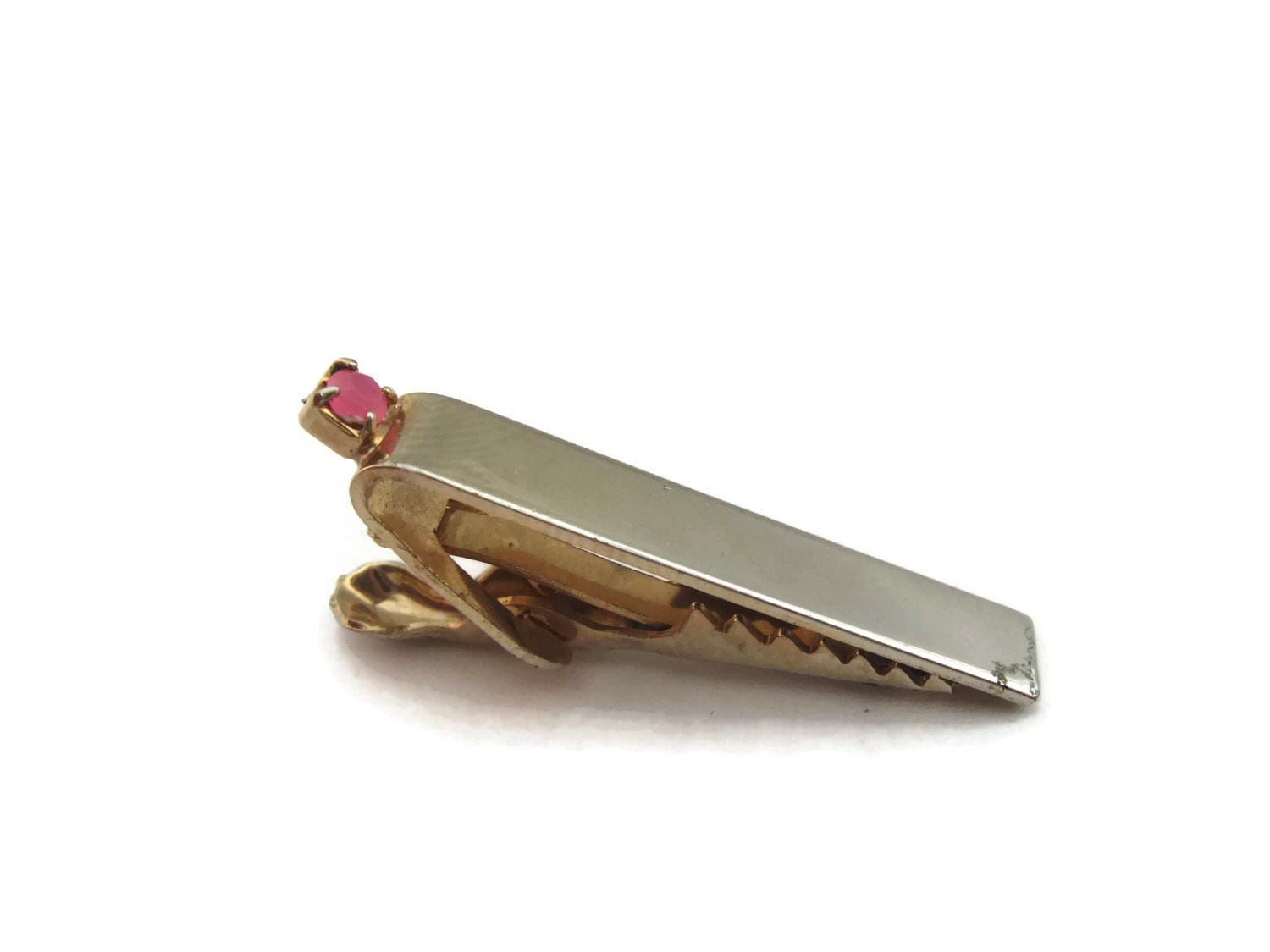 Vintage Men's Tie Bar Clip Jewelry: Pink Jewel End ~ There is a mark on the tip.