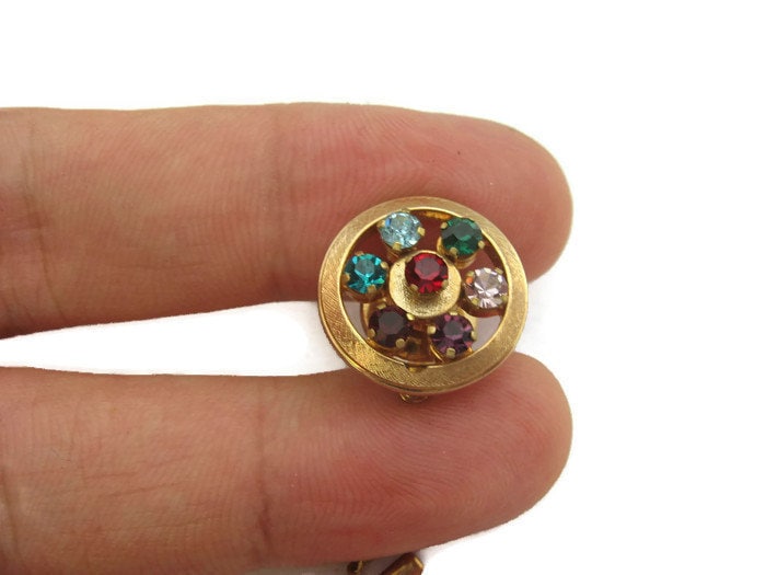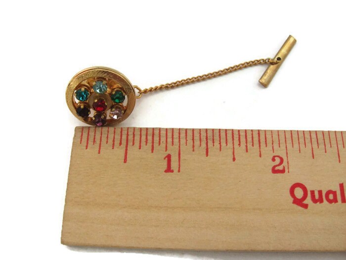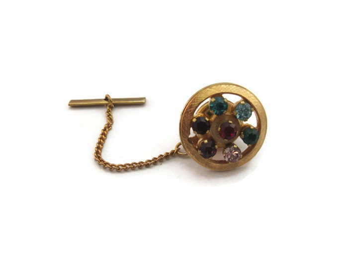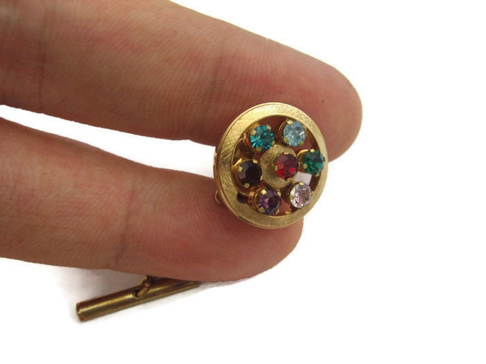Vintage Men's Tie Tack Pin Jewelry: Stunning Multi Color Jewel Gold Tone Design