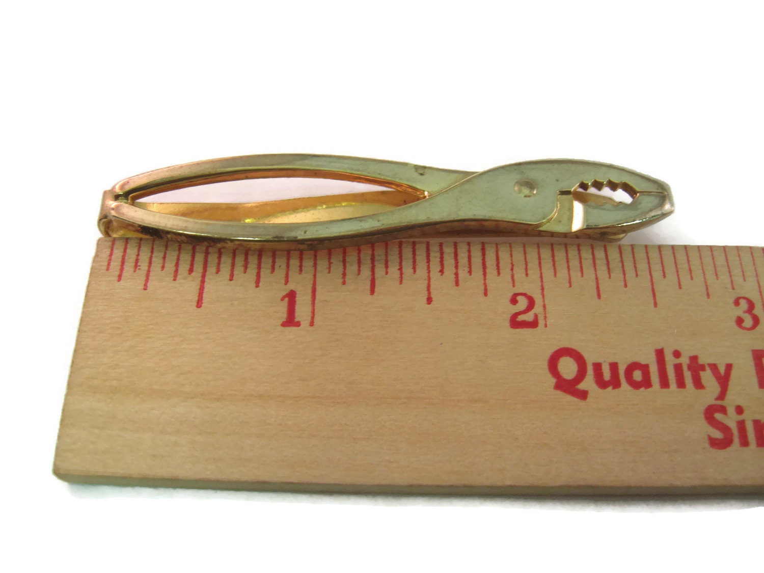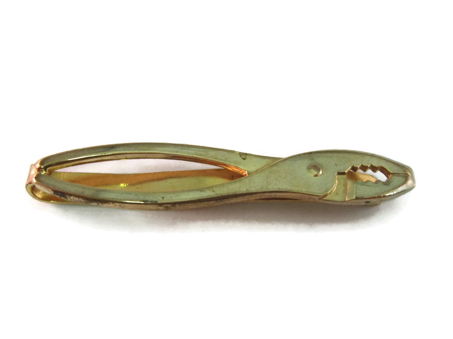 Vintage Men's Tie Bar Clip Jewelry: Pliers Tool Theme Gold Tone Design