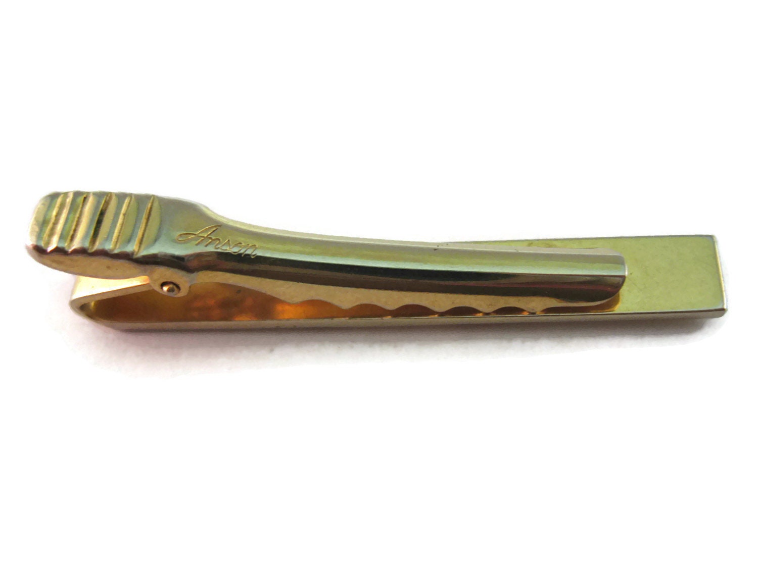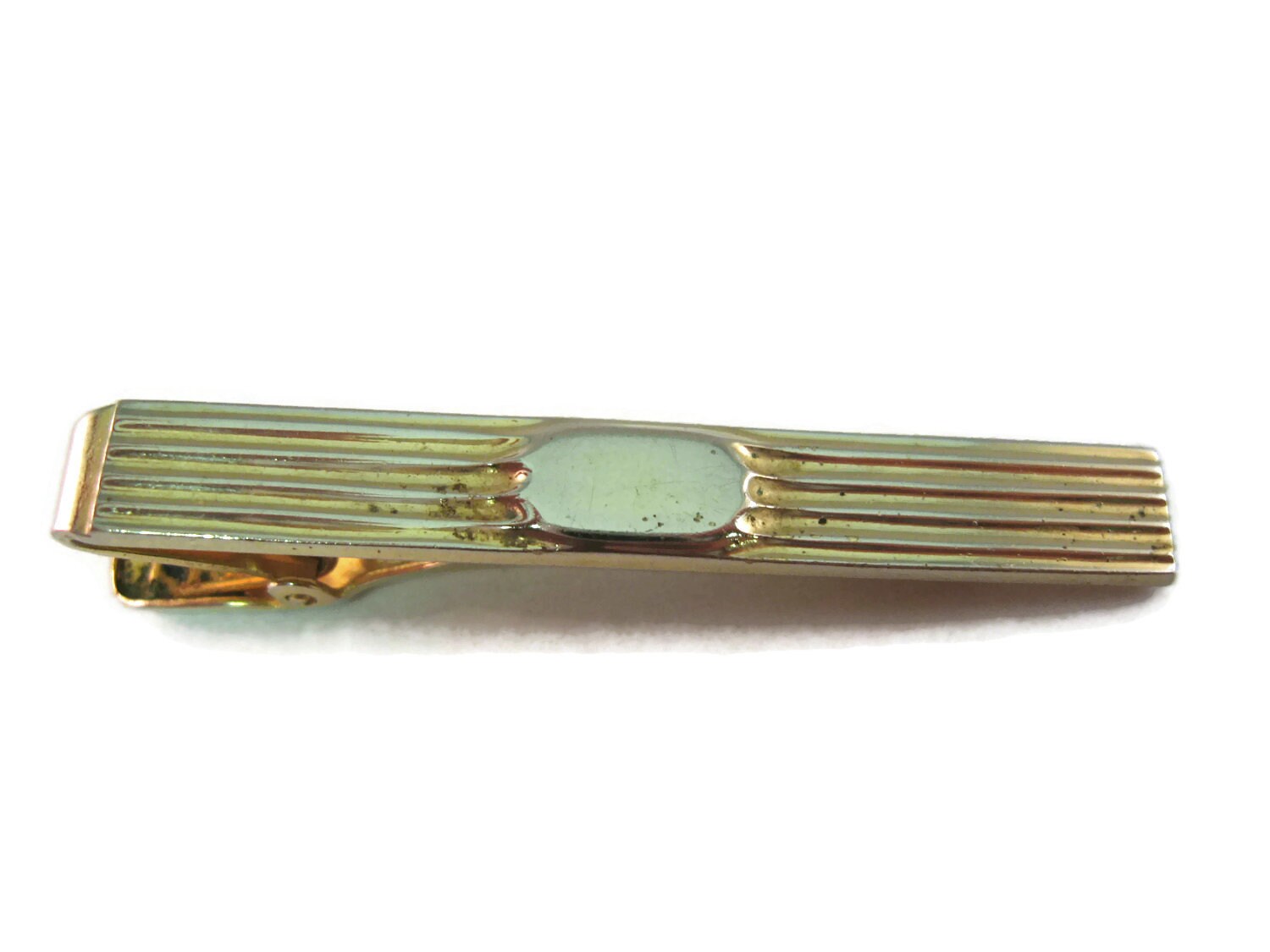 Vintage Men's Tie Bar Clip Jewelry: Horizontal Groove Gold Tone Design