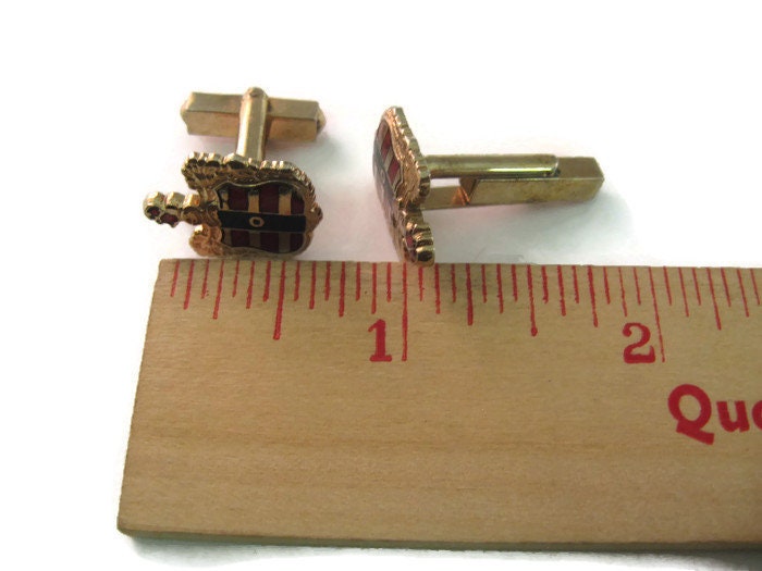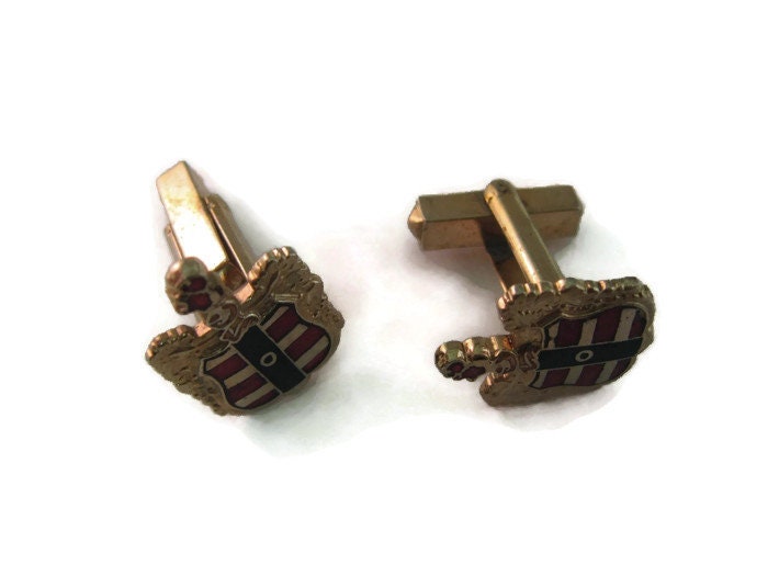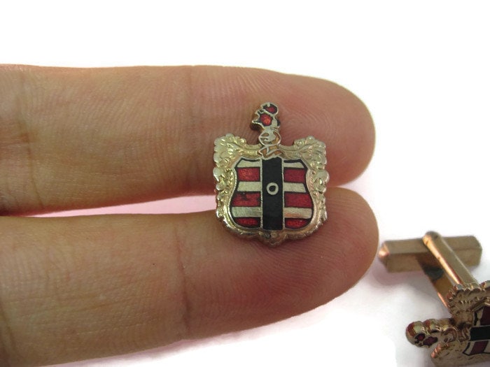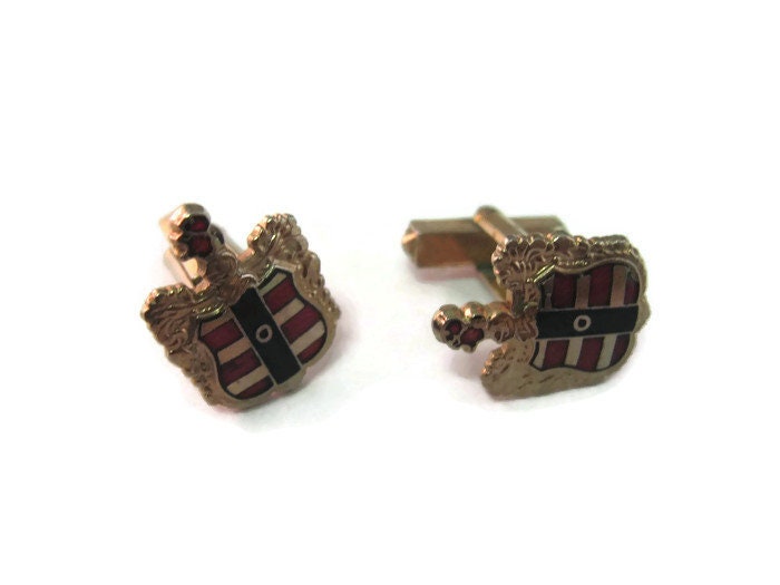 Vintage Cufflinks for Men: Red & White Stripes Shield Crest Design