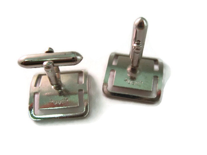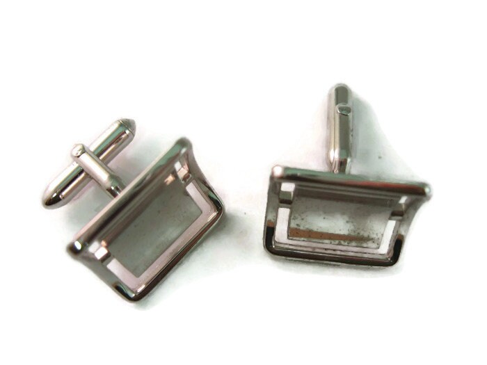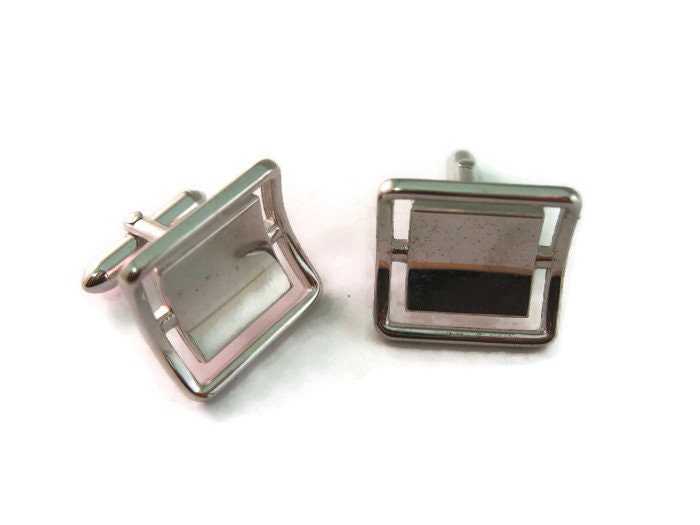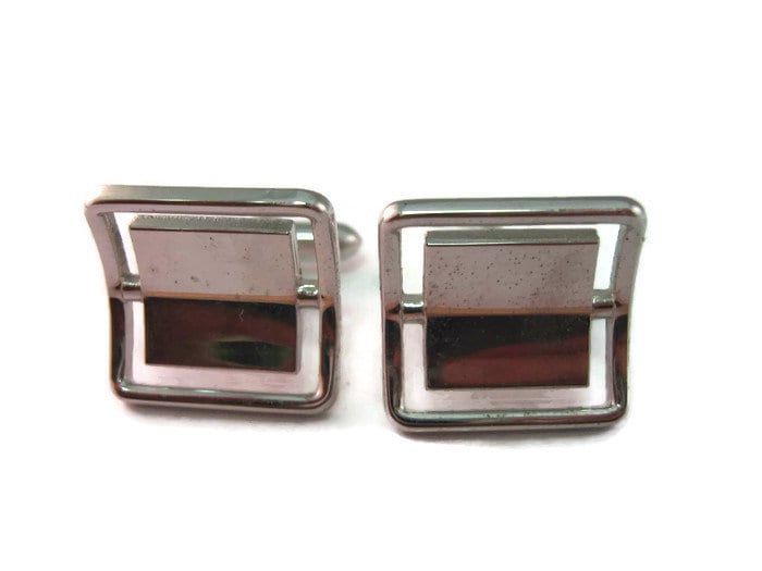 Vintage Cufflinks for Men: Silver Tone Modernist Open Bent Shape Design