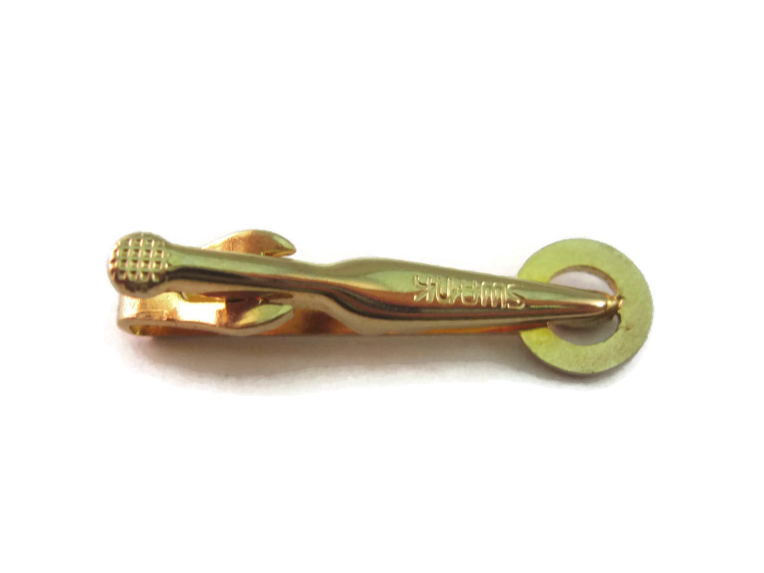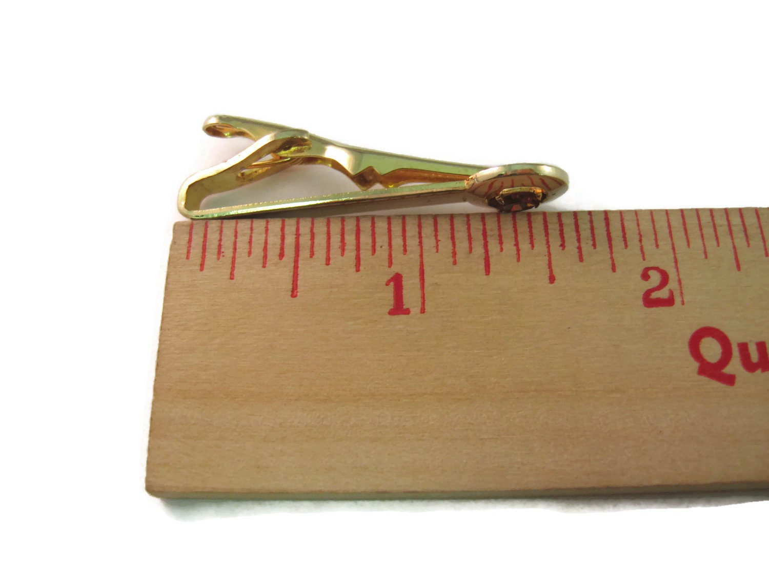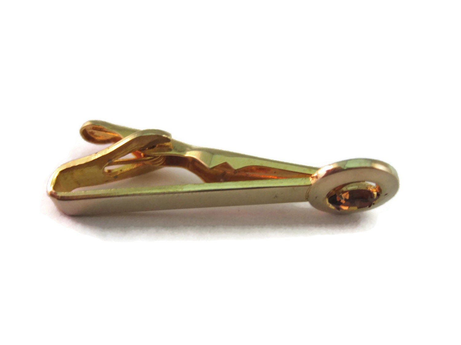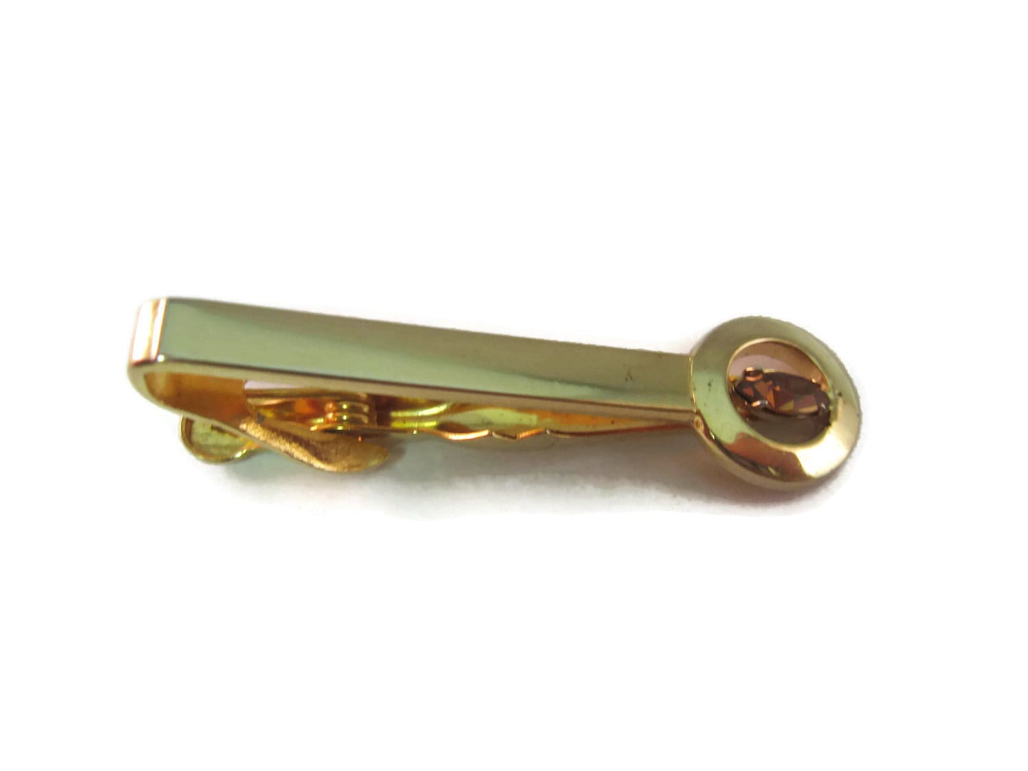 Vintage Men's Tie Bar Clip Jewelry: Brown Jewel Gold Tone Open Circle End Design