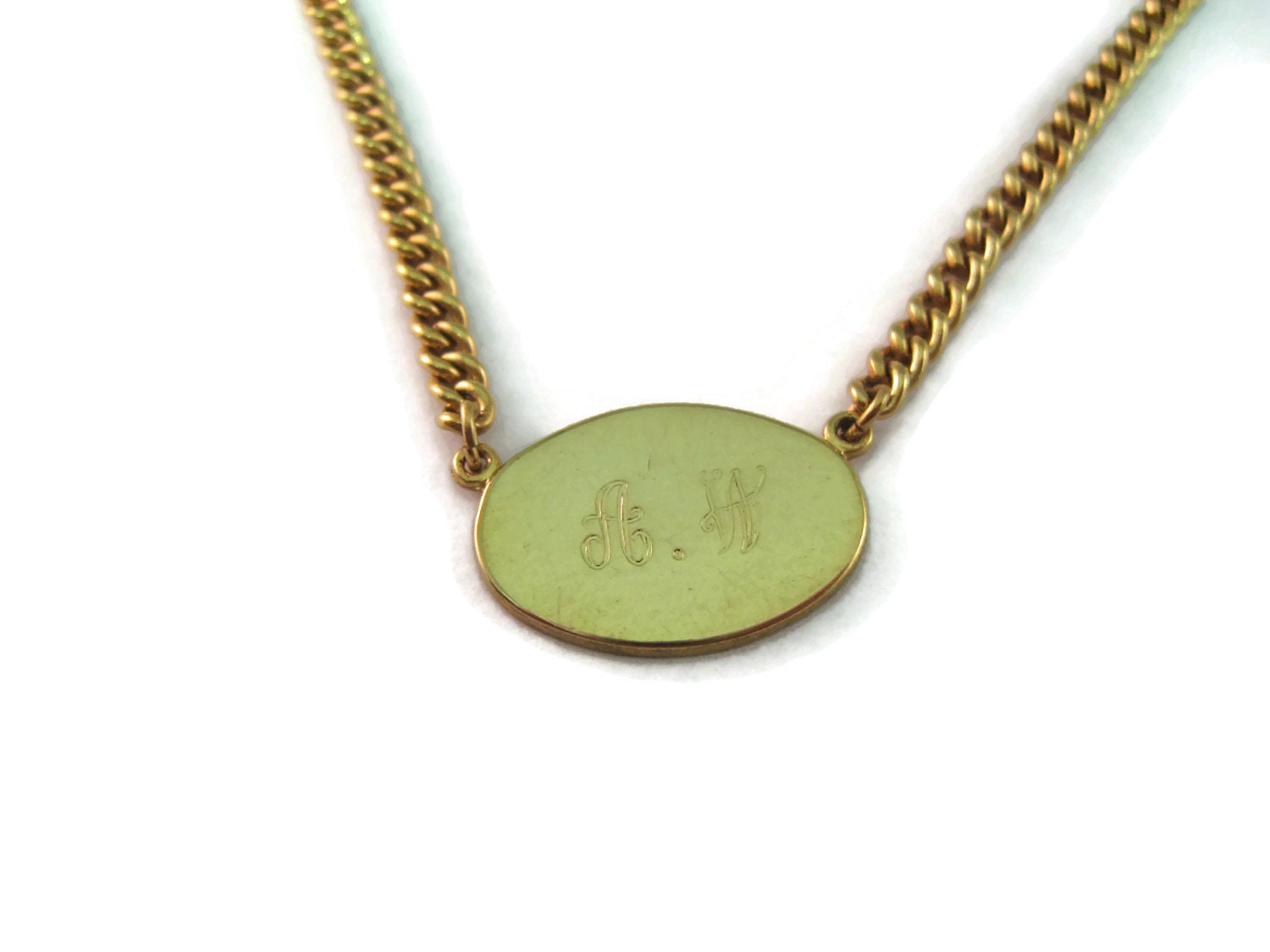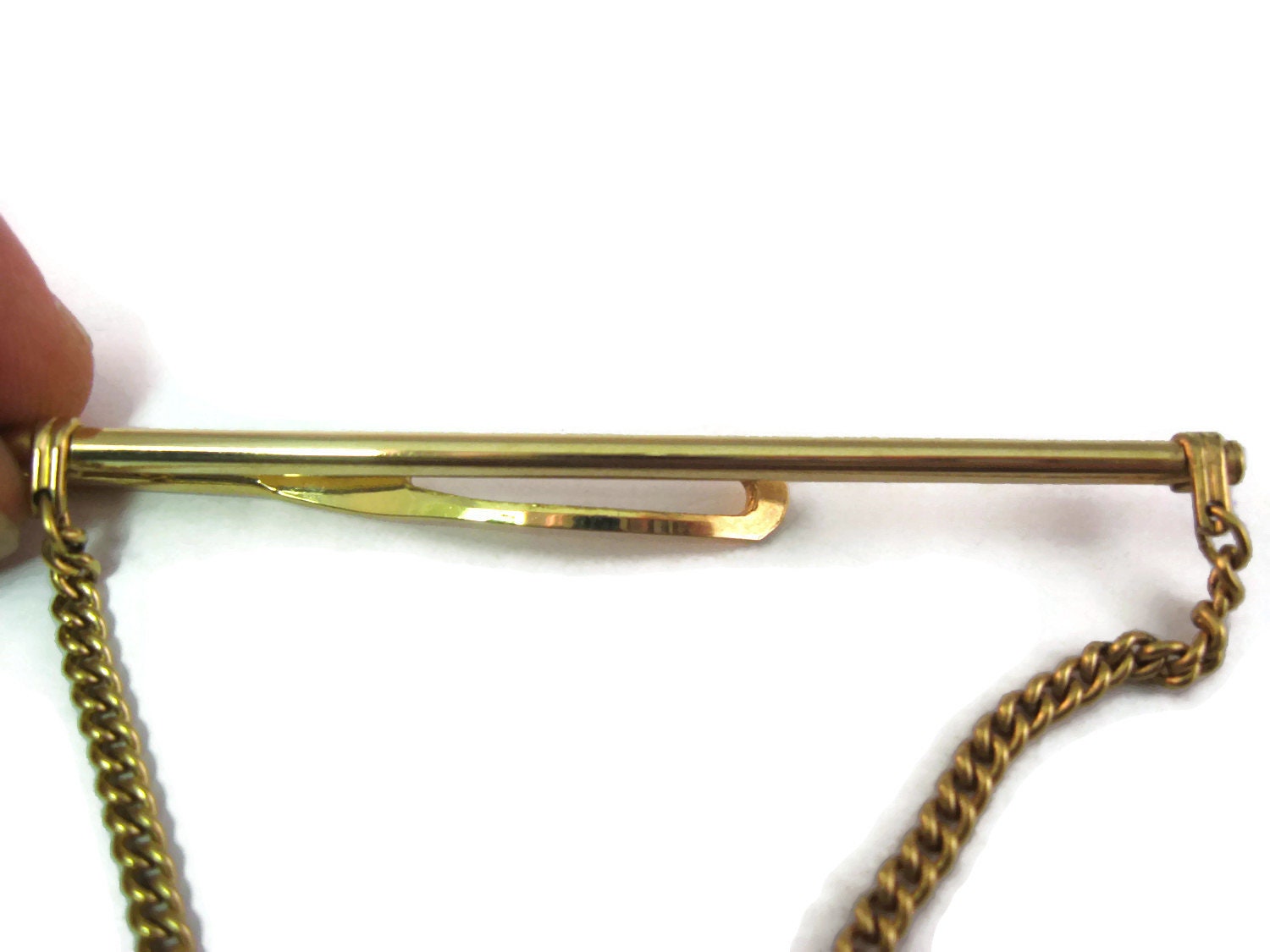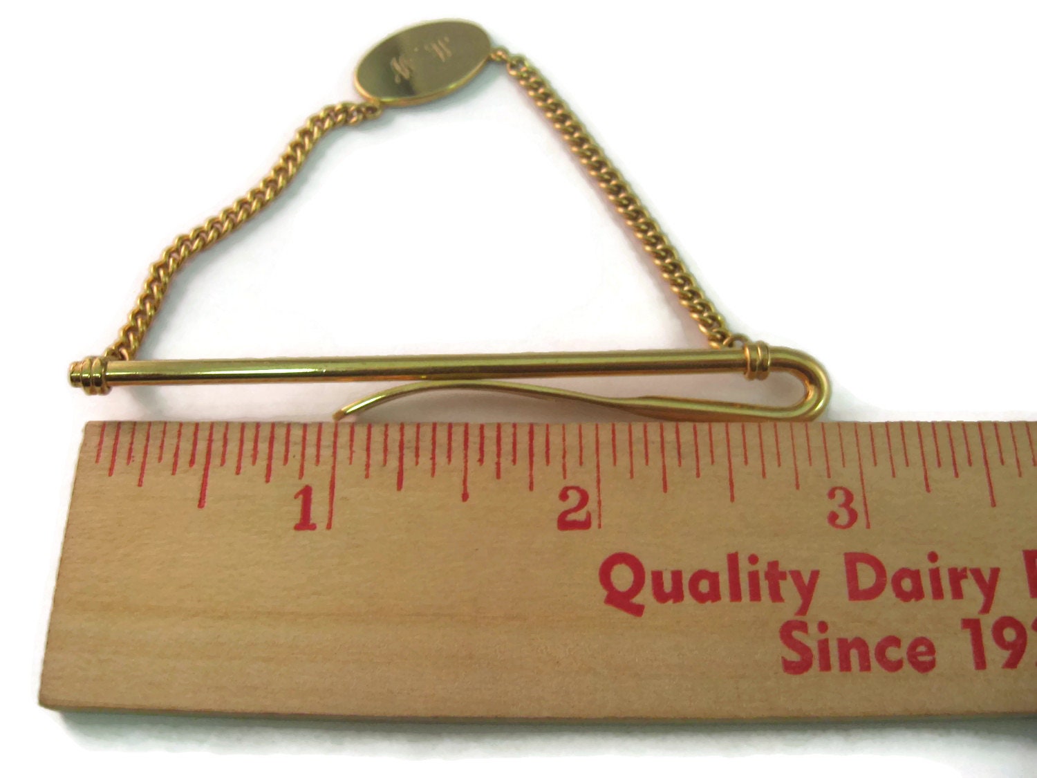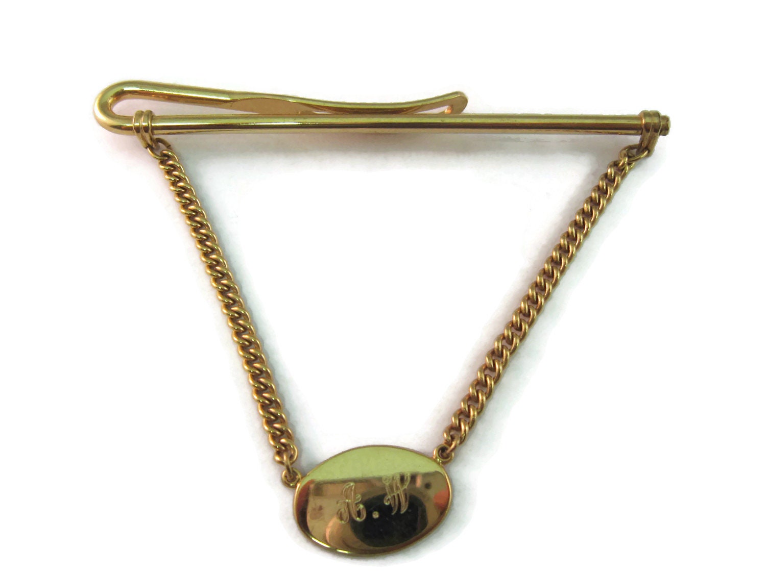 Vintage 1978 Men's Tie Bar Clip Jewelry: "AW" Initials 1/20 12K Gold Fill Chain Design RM Koffel Inc