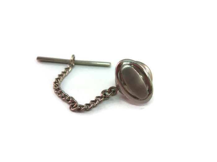 Vintage Men's Tie Tack Pin Jewelry: Nice Classic Silver Tone Art Deco Oval Design