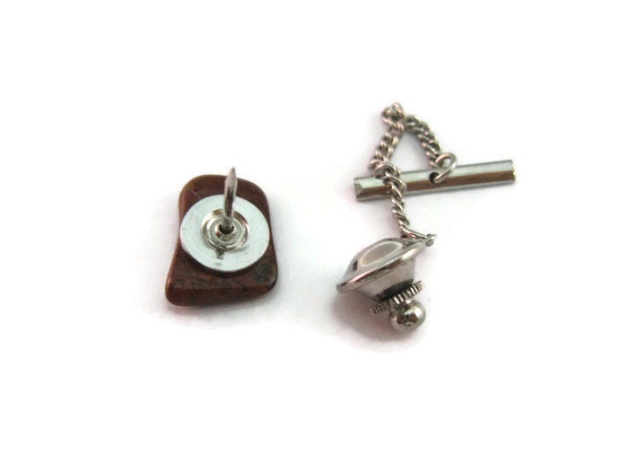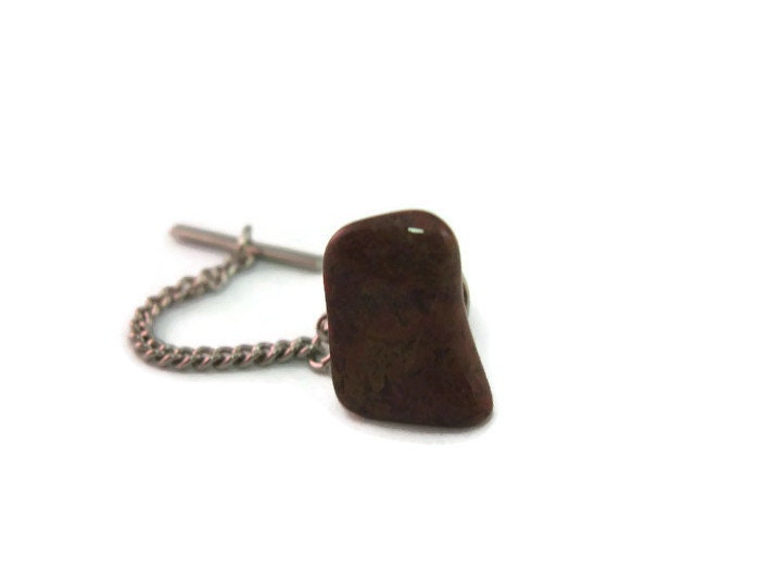 Men's Tie Tack Pin Jewelry: Polished Brown & Red Stone Design