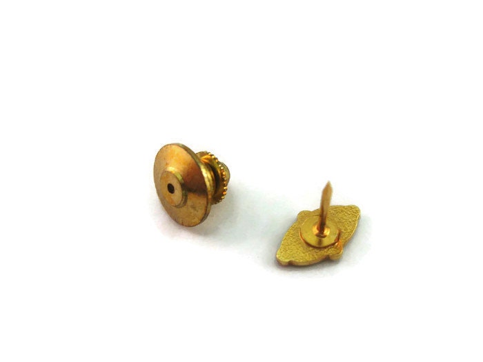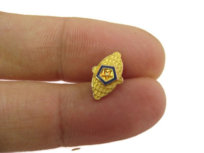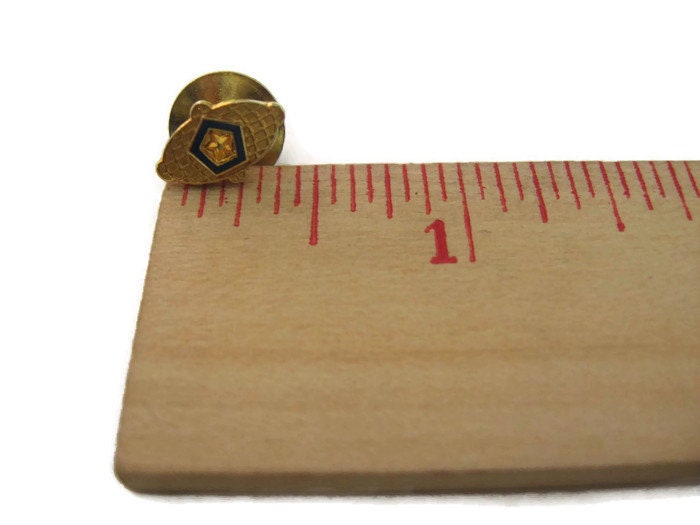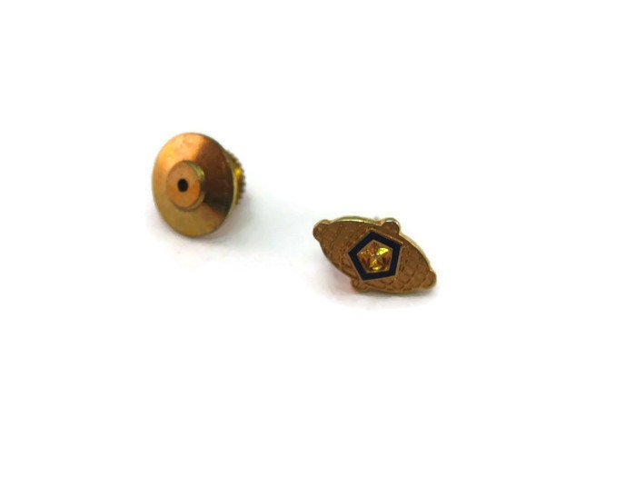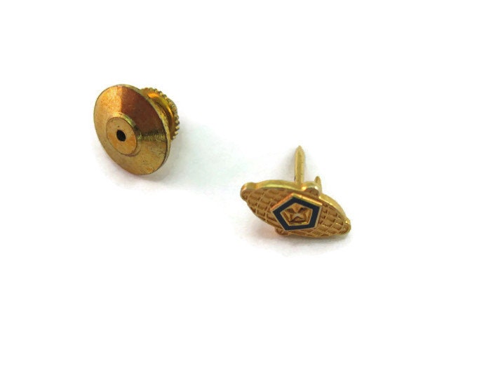 Vintage Men's Tie Tack Pin Jewelry: Gold Tone Grid World Blue Pentagon Star Center Design