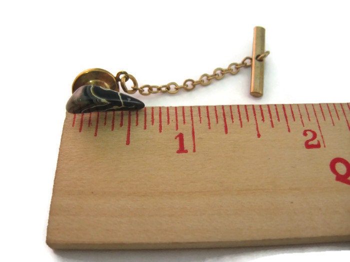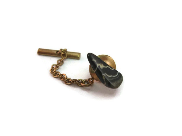 Vintage Men's Tie Tack Pin Jewelry: Black White & Gray Polished Stone Design
