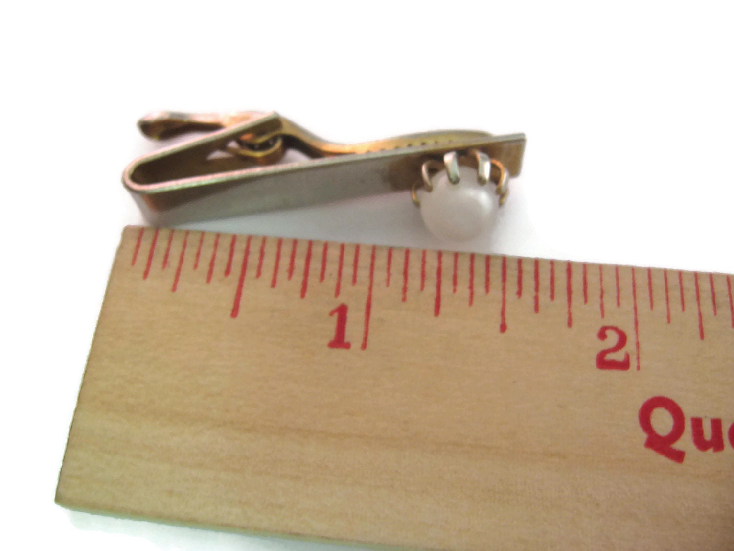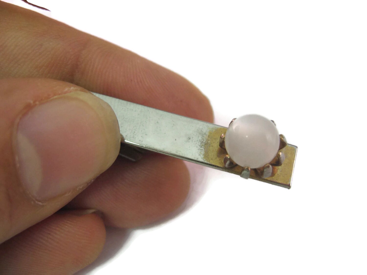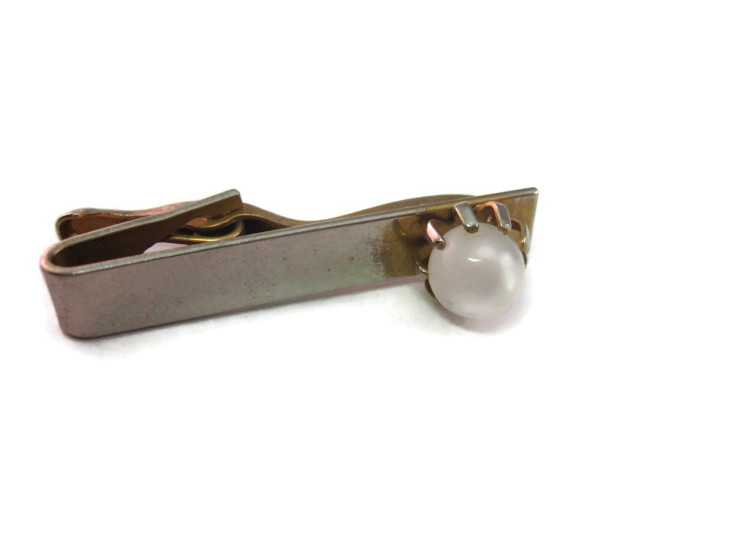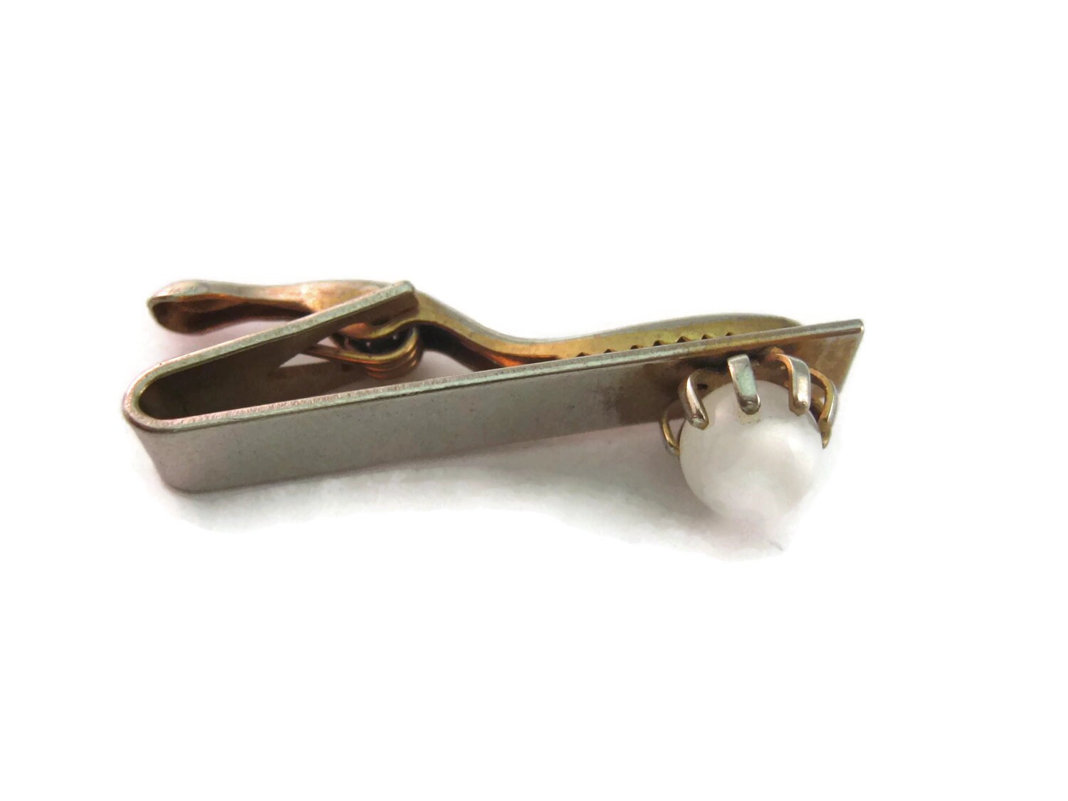 Vintage Men's Tie Bar Clip Jewelry: Milky White Glass Ball Accent Design