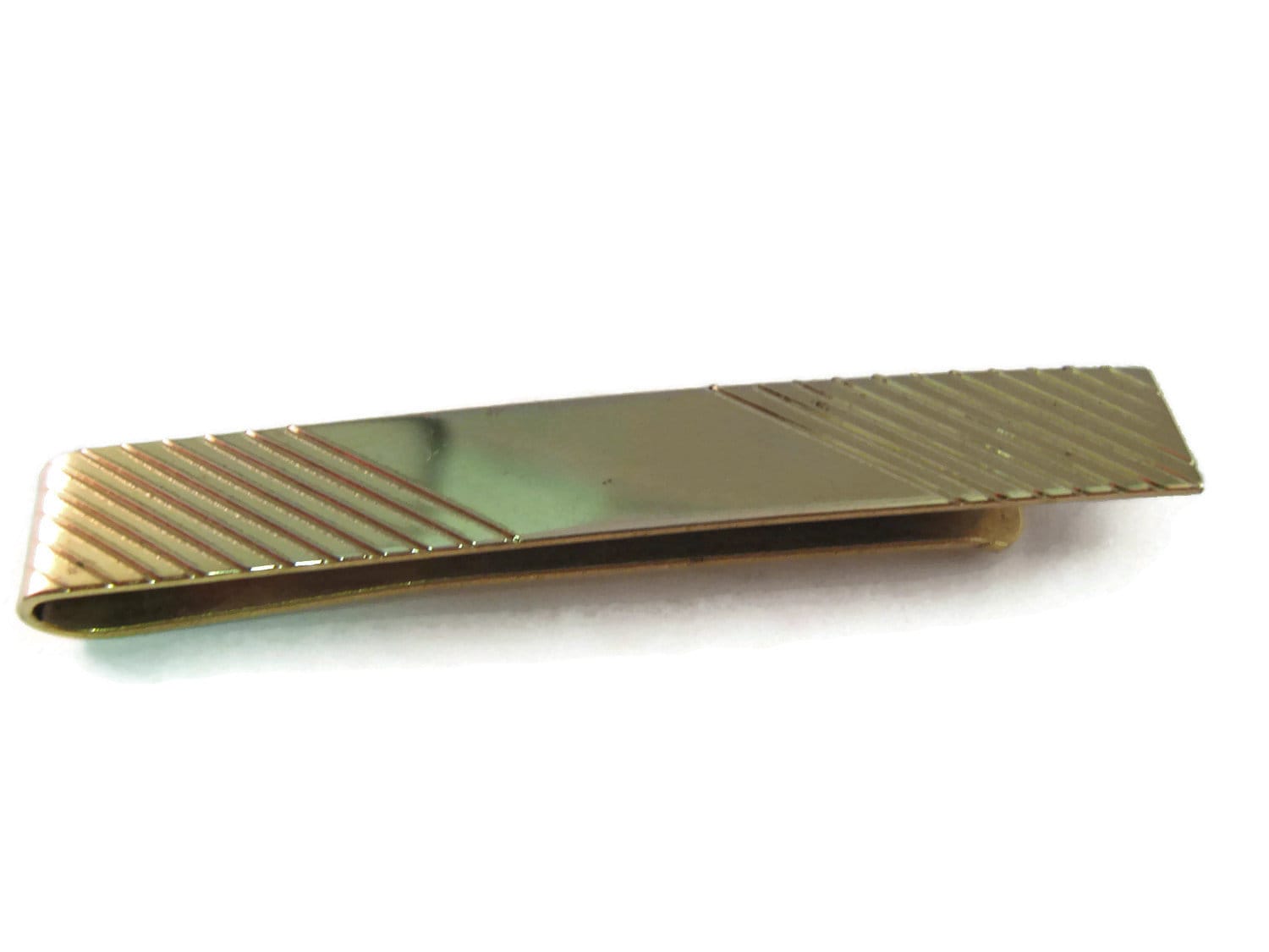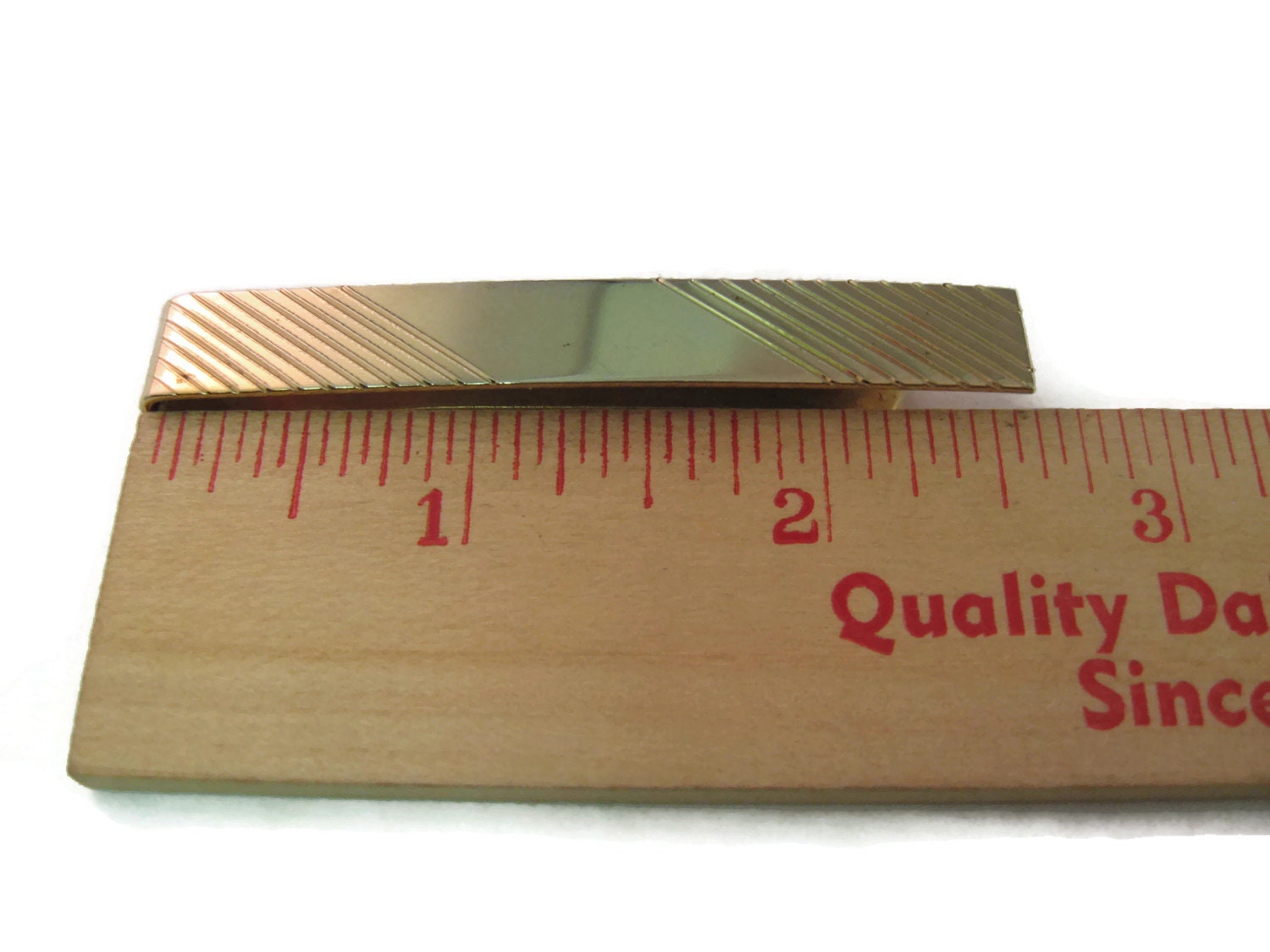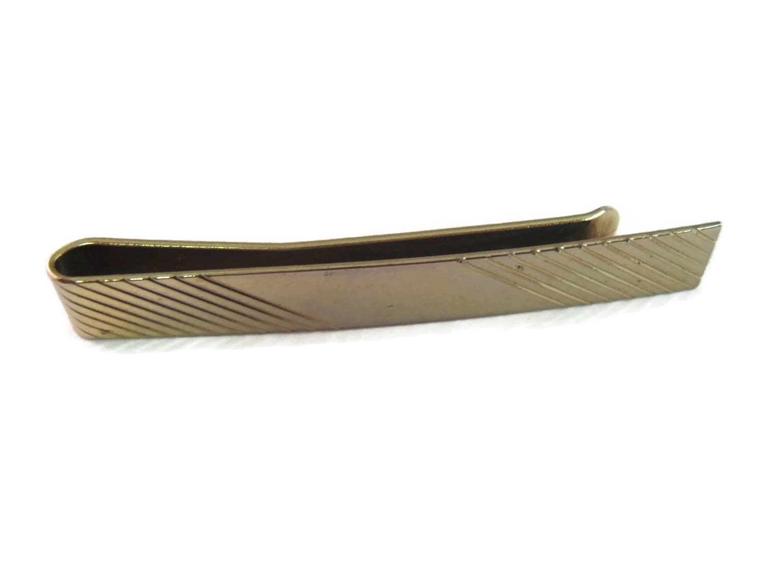 Vintage Men's Tie Bar Clip Jewelry: Larger Size Diagonal Grooves Gold Tone Design