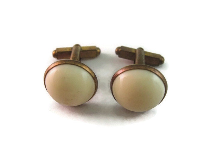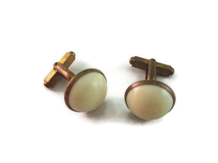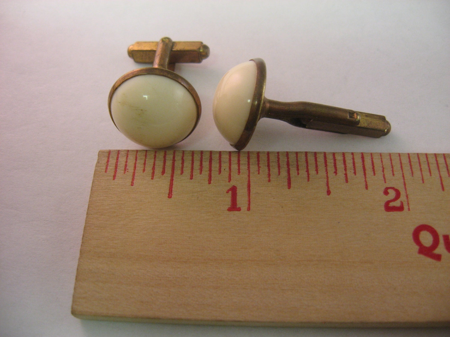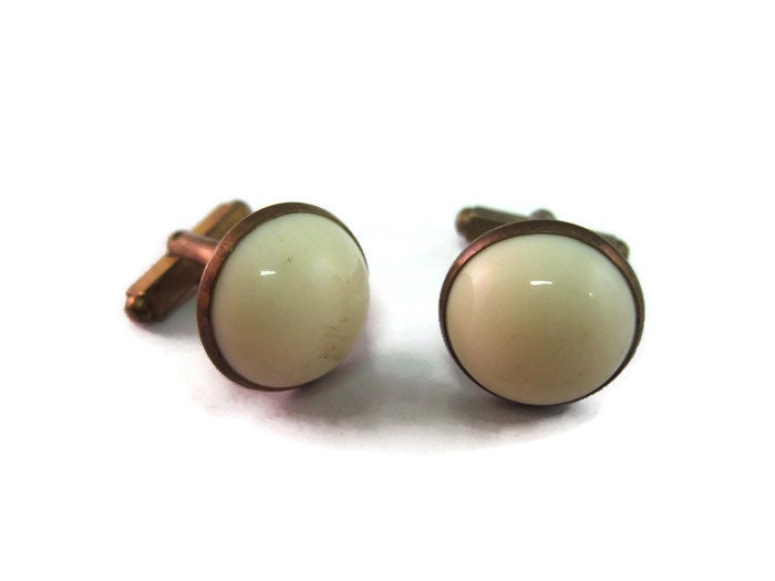 Vintage Cufflinks for Men: White Half Sphere Dome Design