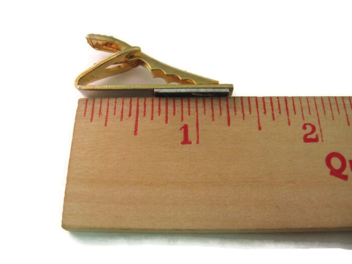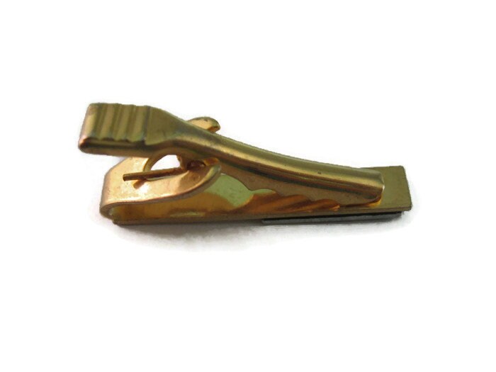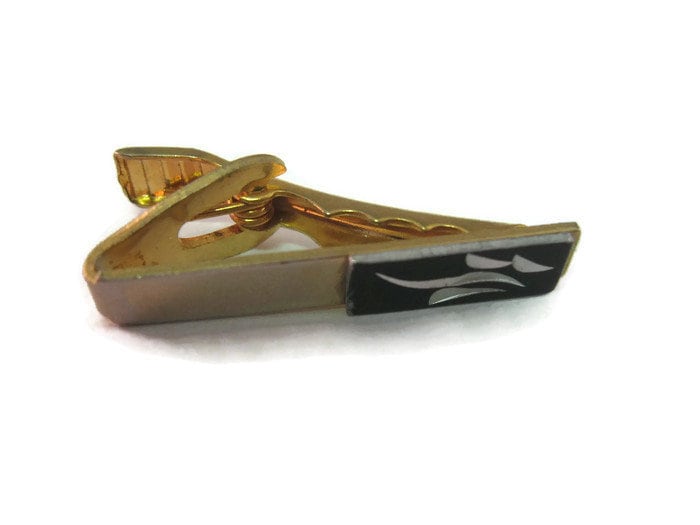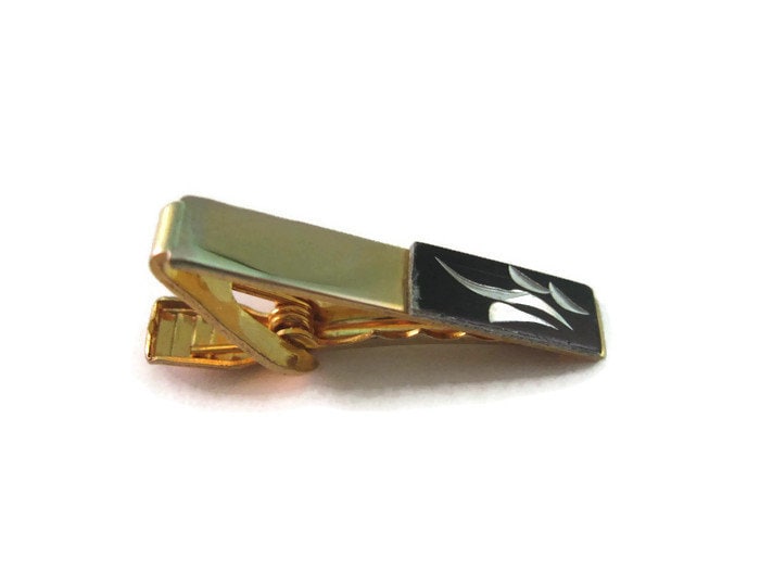 Vintage Men's Tie Bar Clip Jewelry: Gold Tone w/ Black & Silver Etch Design