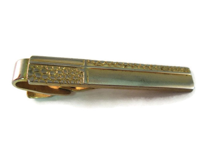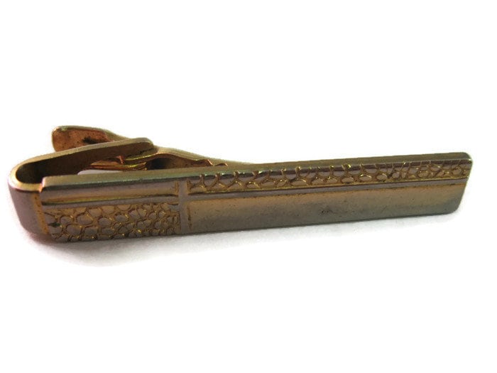 Vintage Men's Tie Bar Clip Jewelry: Bumpy & Smooth Texture Gold Tone