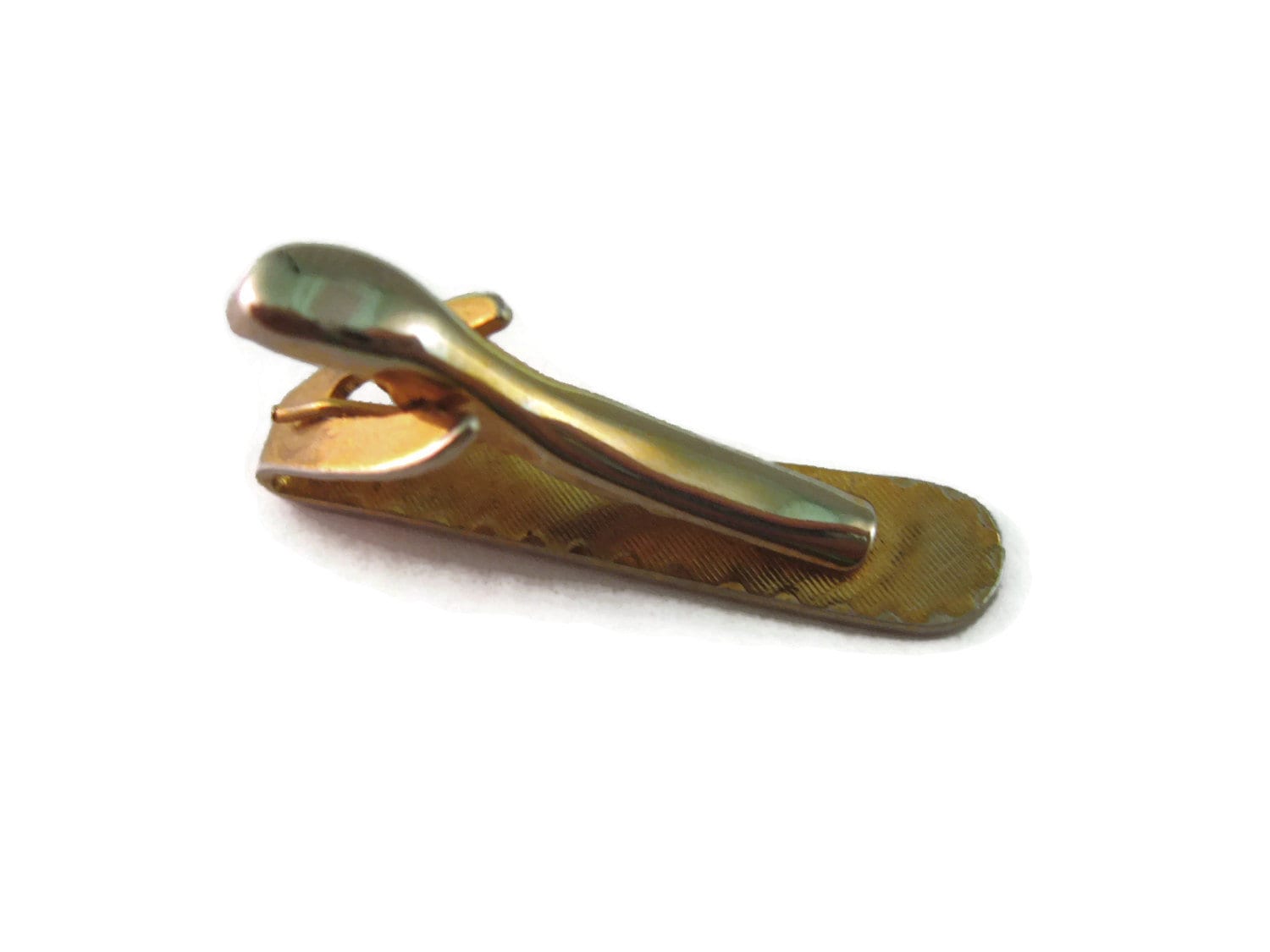 Vintage Men's Tie Bar Clip Jewelry: Round End Tapered Beveled Edge Design
