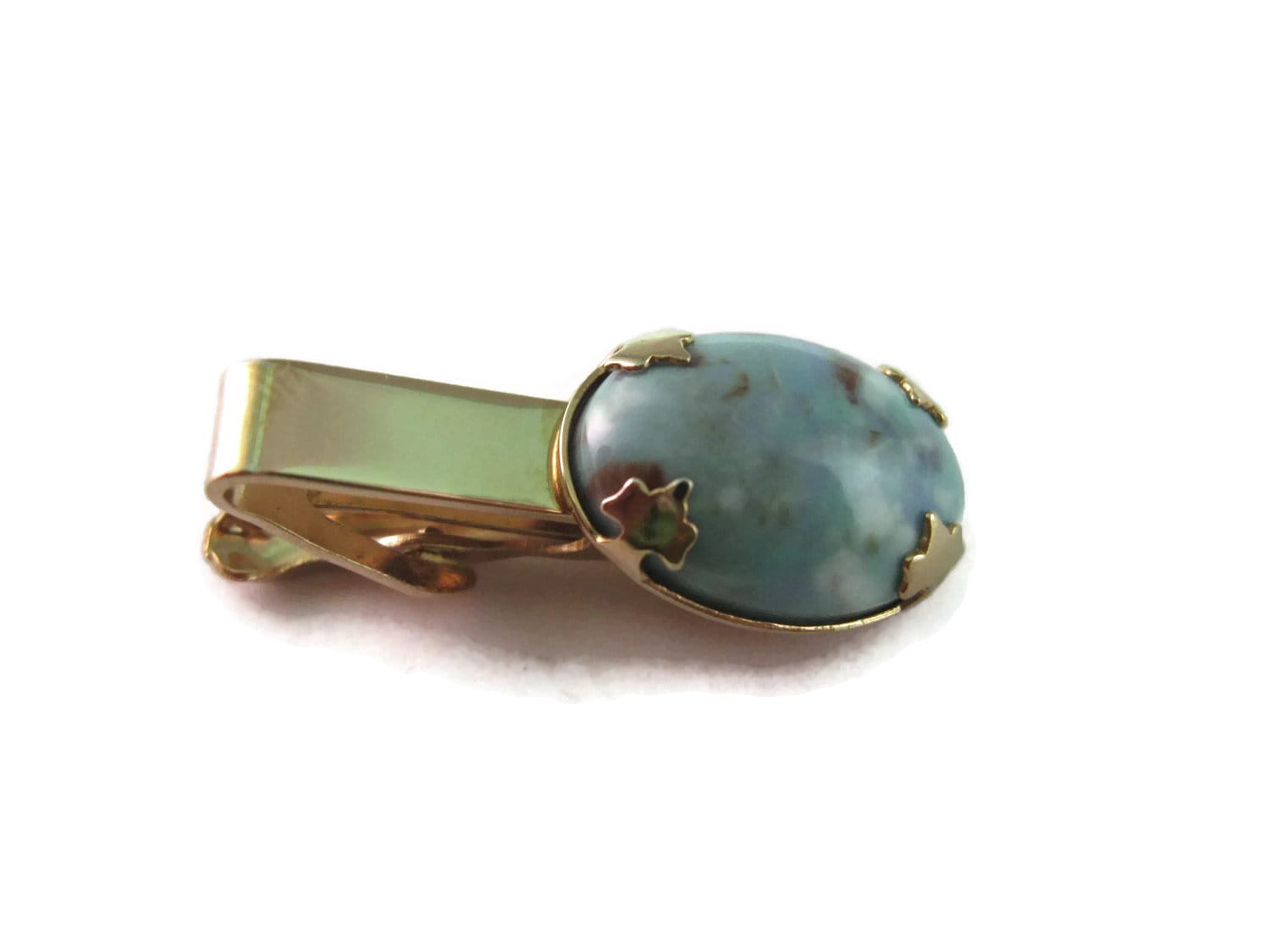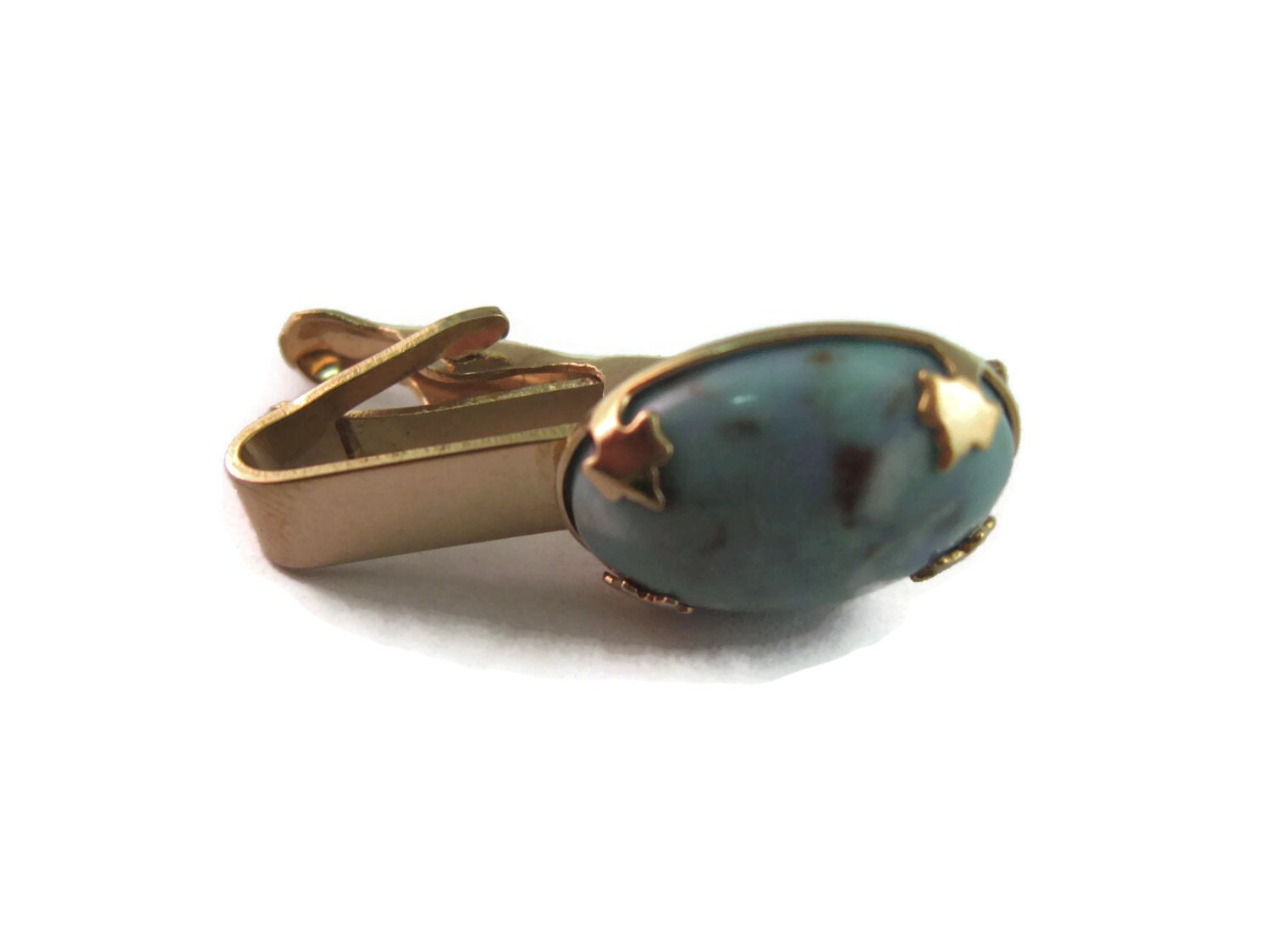 Vintage Men's Tie Bar Clip Jewelry: Beautiful Blue Stone Gold Tone Design