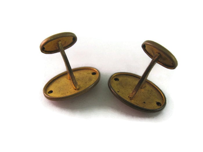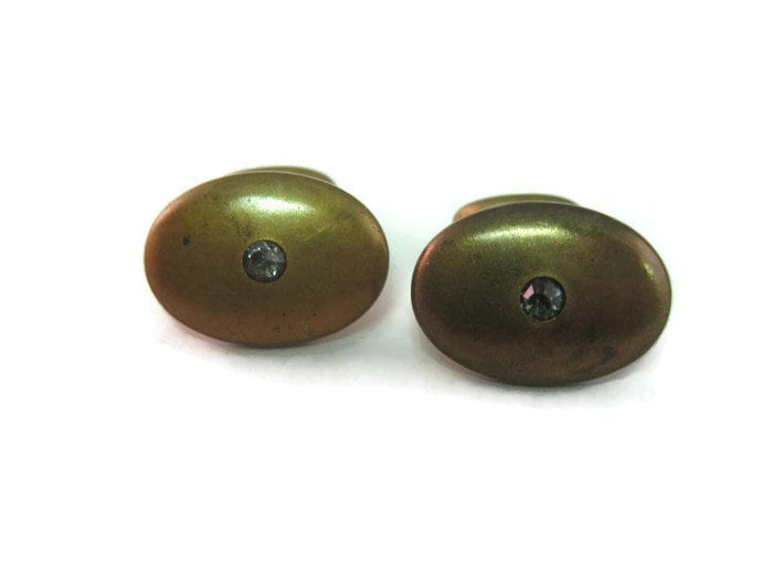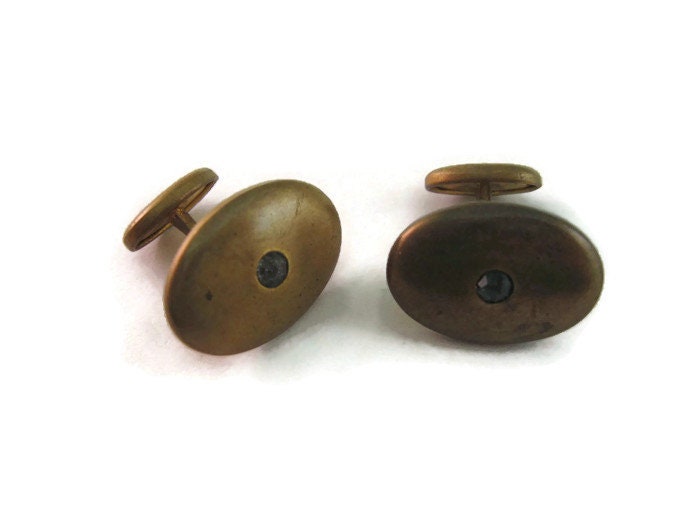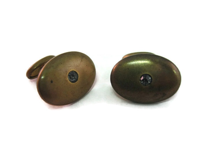 Antique Vintage Cufflinks for Men: Clear Jewel Gold Tone Oval Design