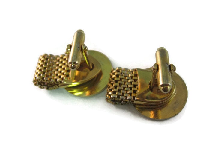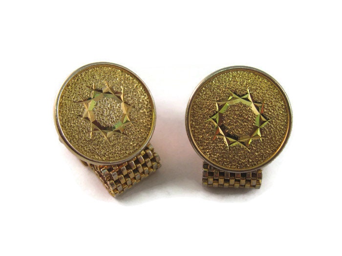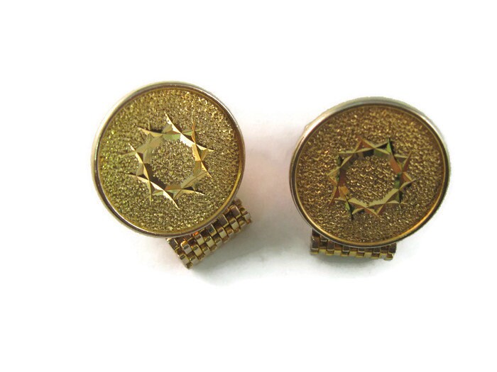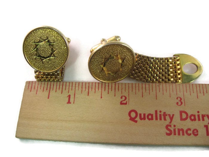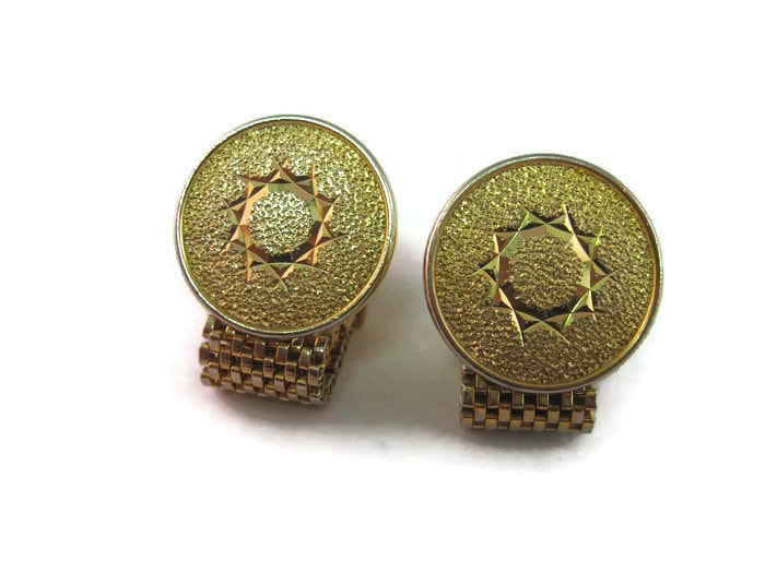 Vintage Cufflinks for Men: Beautiful Star Textured Gold Tone Cuff Mesh Wrap Design
