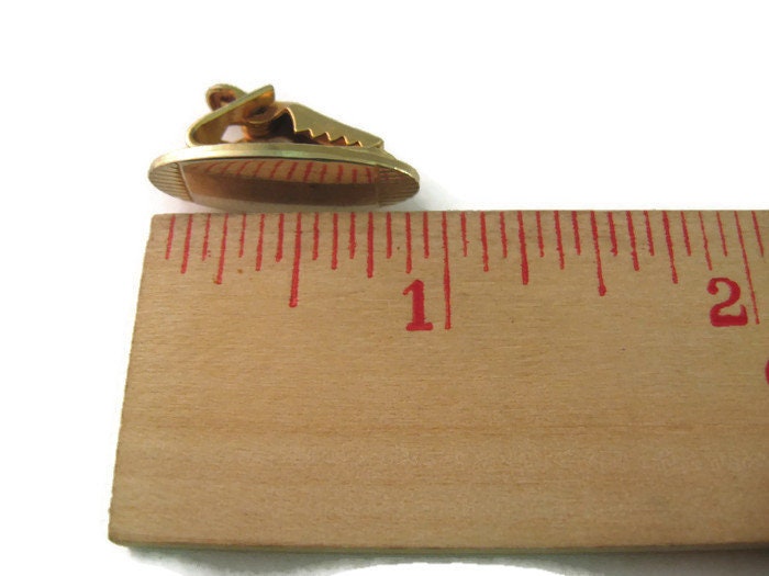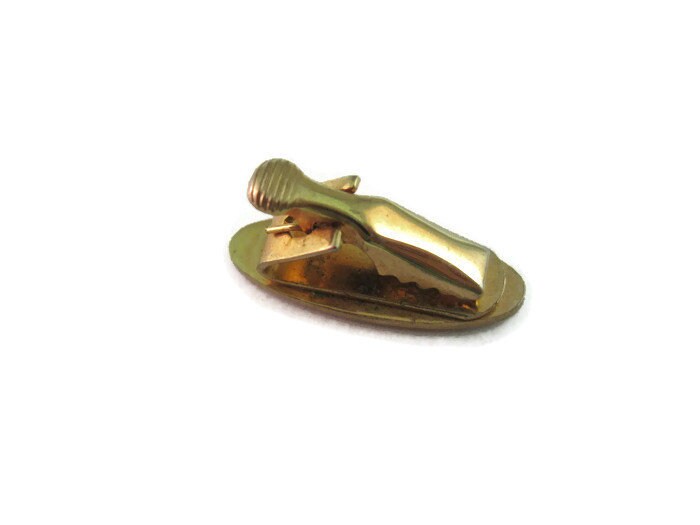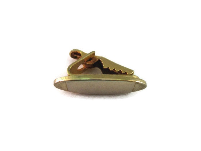 Vintage Men's Tie Bar Clip Jewelry: Gold Tone Oval Grooved Tips Design