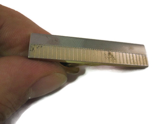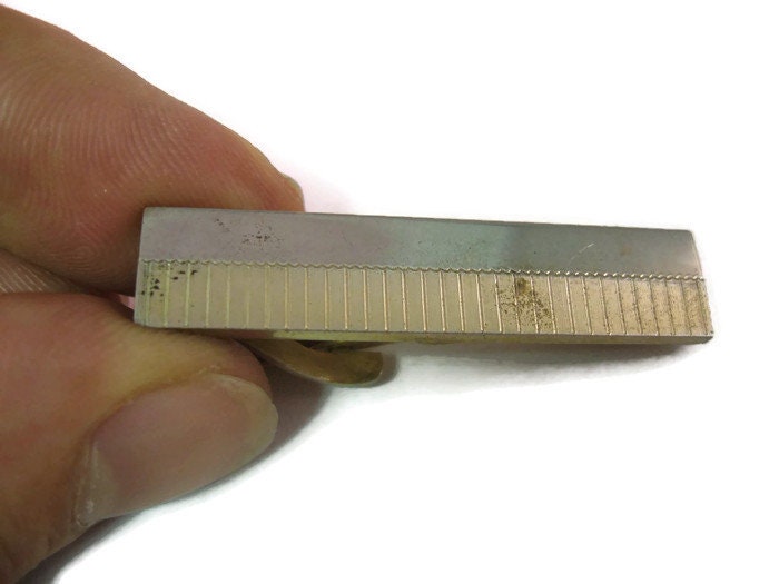 Vintage Men's Tie Bar Clip Jewelry: Very Groove Bottom Design by Flex Let Quality ~ Obvious Wear & Oxidation