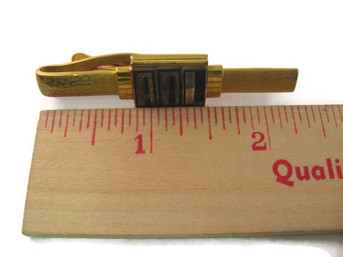 Vintage Men's Tie Bar Clip Jewelry: "ADL" Letters Initials Art Deco Design