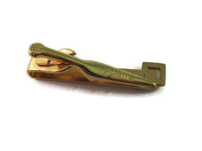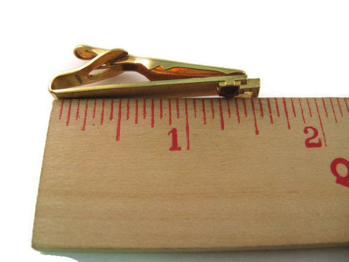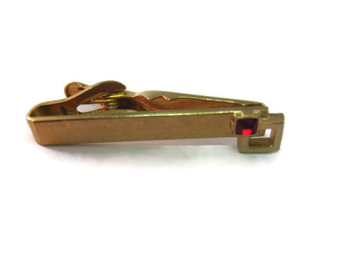 Vintage Men's Tie Bar Clip Jewelry: Gorgeous Red Jewel Modernist Gold Tone Design
