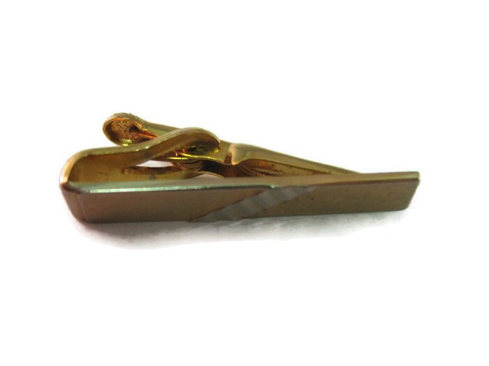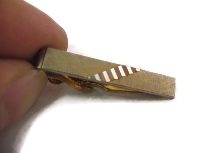 Vintage Men's Tie Bar Clip Jewelry: Lovely Textured Gold Tone Diagonal Stripe Design