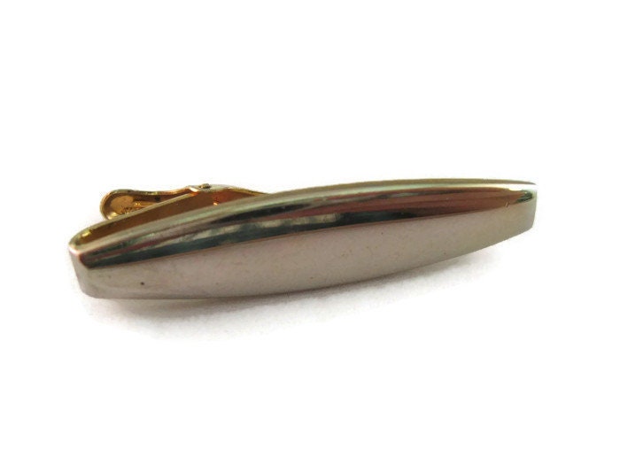Vintage Men's Tie Bar Clip Jewelry: Faded Gold Tone Round Design