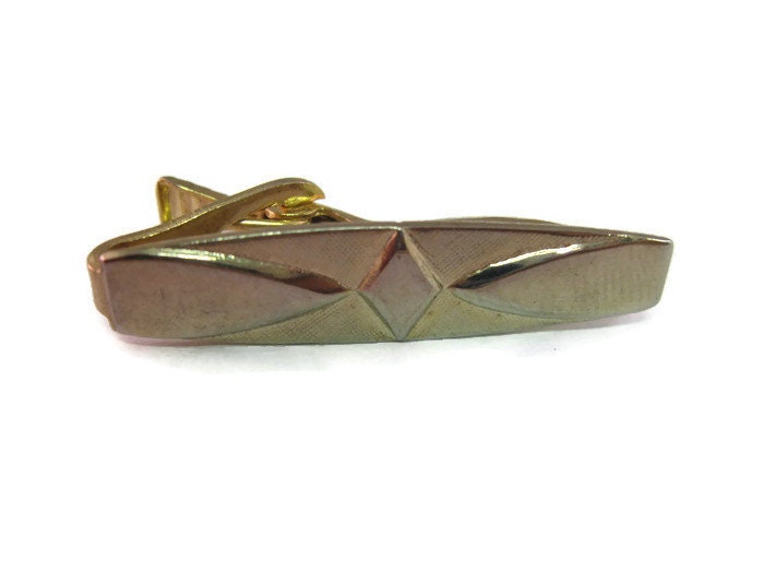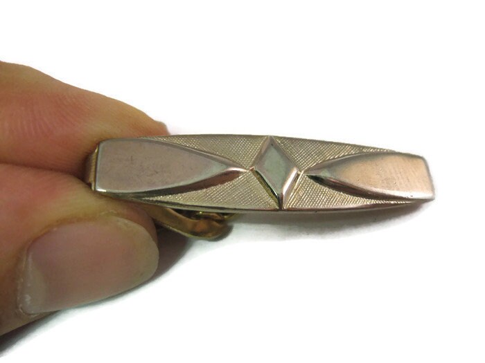 Vintage Men's Tie Bar Clip Jewelry: Faded Gold Tone Diamond Shape Middle Design