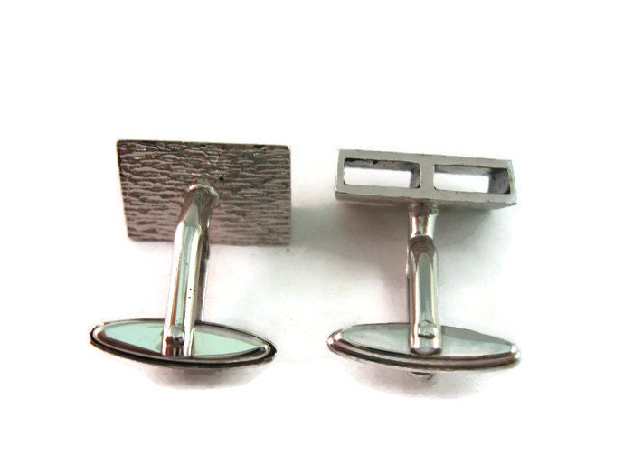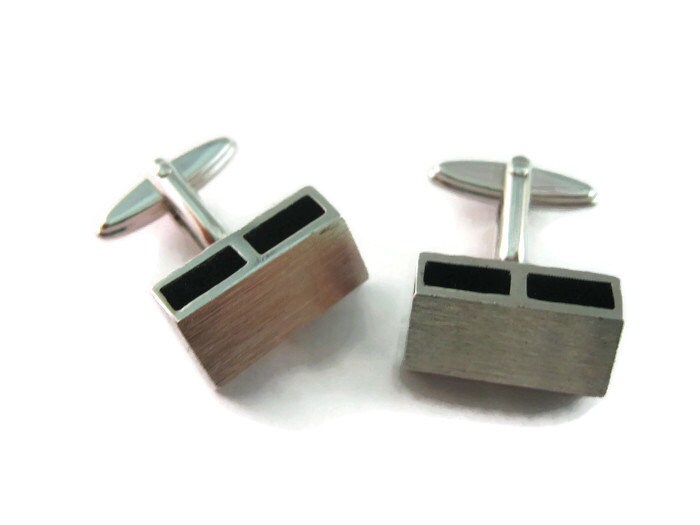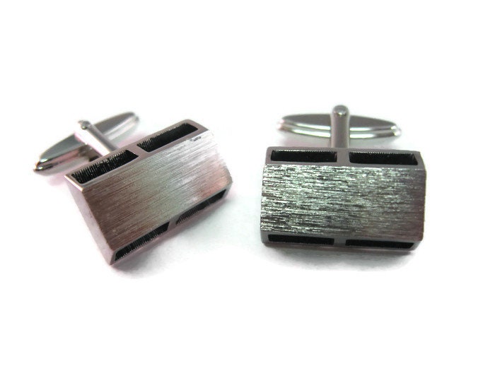 Vintage Cufflinks for Men: Very Nice See Through Modernist Cinderblock Look Silver Tone Design