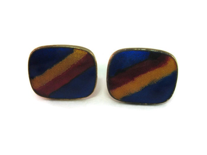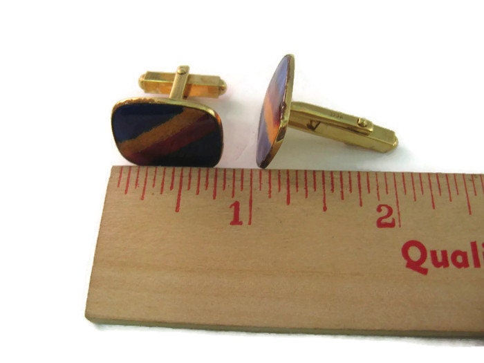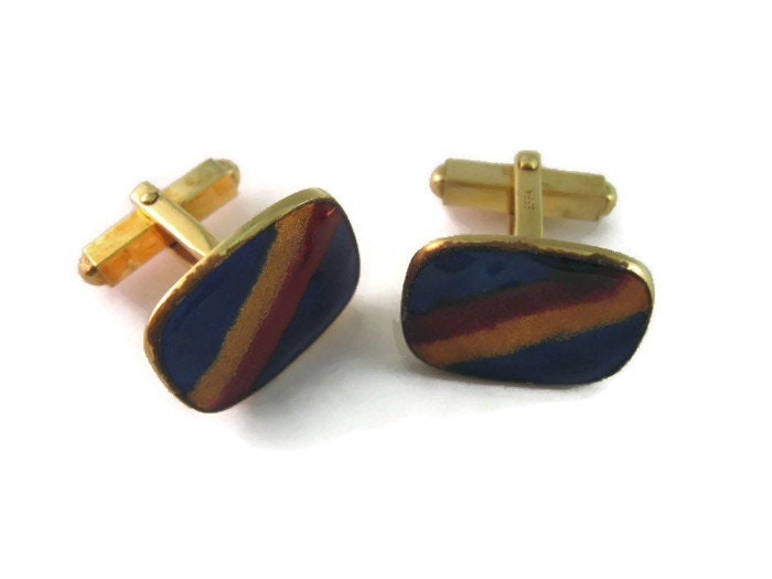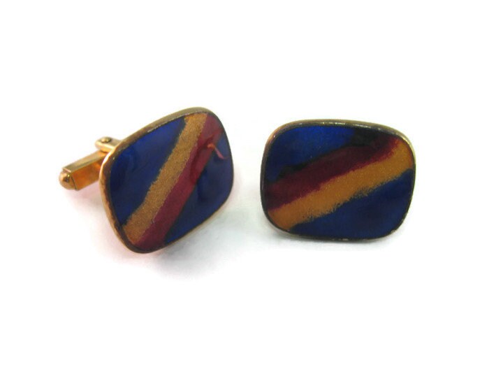 Vintage Cufflinks for Men: Stunning Blue Gold & Yellow Enamel Art Design