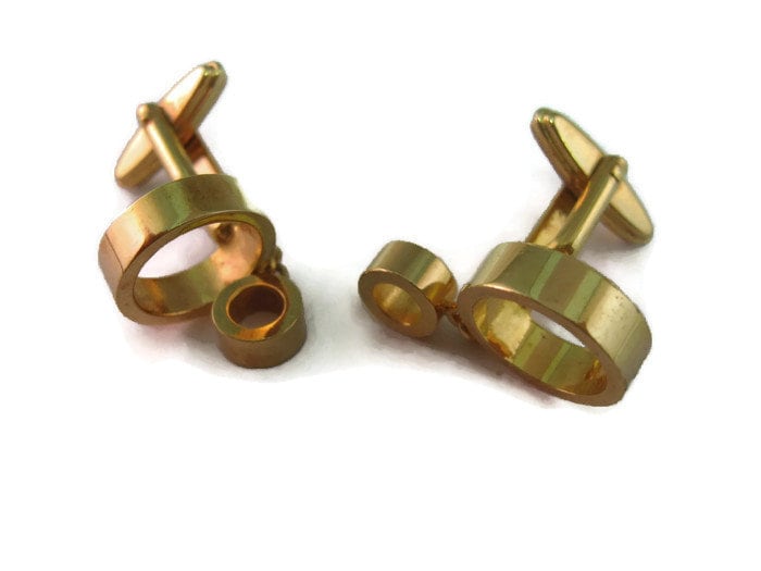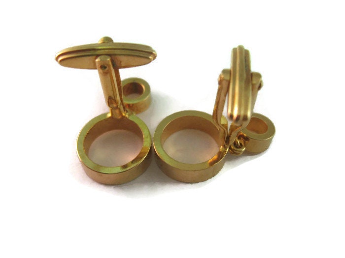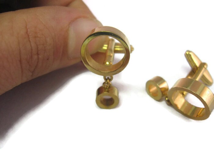 Vintage Cufflinks for Men: Nice Modernist Open Circle Hanging Circle Gold Tone Design